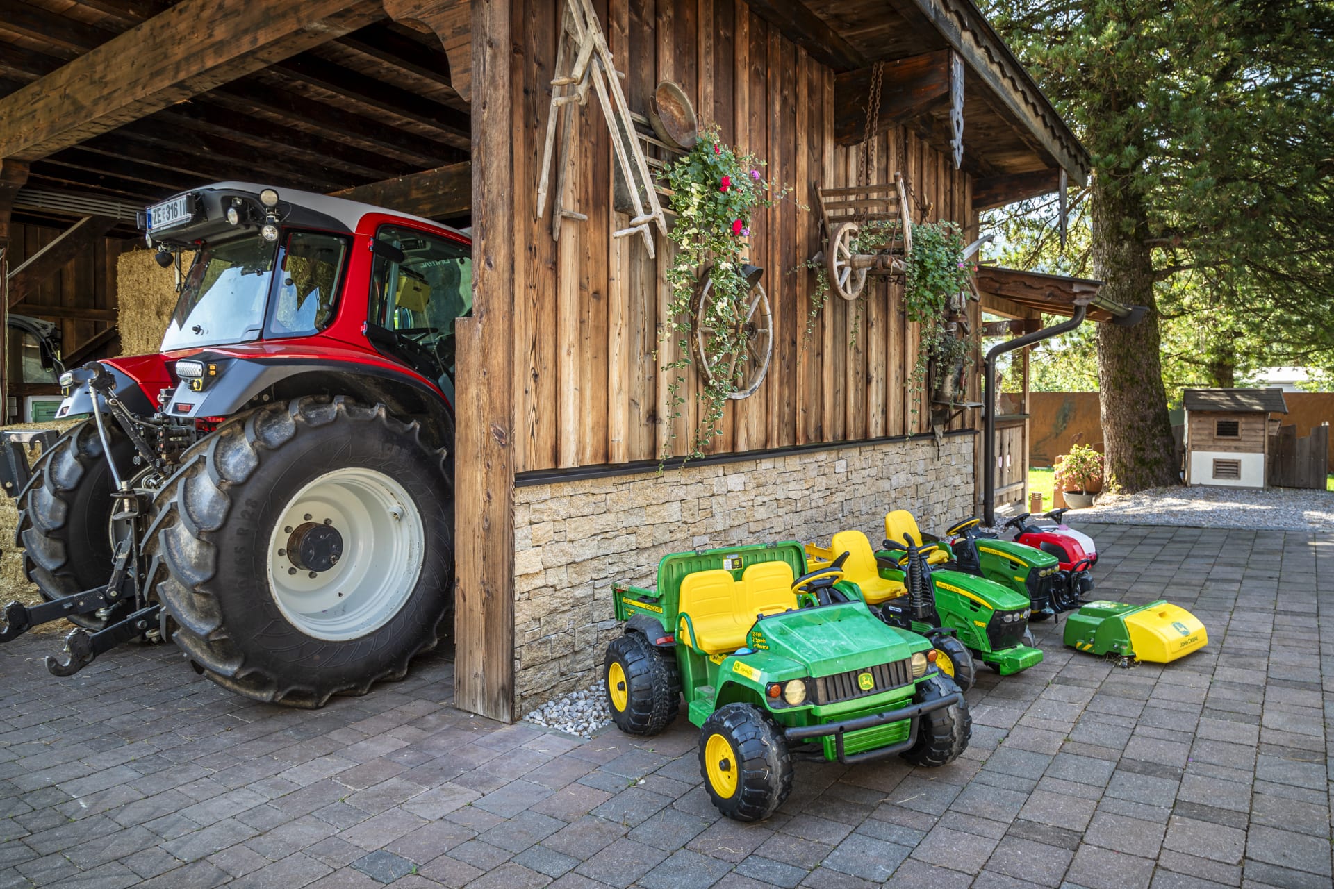 Kinderbauernhof - ein echtes Abenteuer: für Kinder haben wir jede Menge Spielmöglichkeiten, wie ein Trampolin, einen Trettraktor mit Anhänger, einen Elektrotraktor oder ein Quad. Dazu einen großen Spielplatz mit Sandkiste, Schaukel und Rutsche sorgen für Spaß und Abenteuer. Während die Kleinen spielen, können die Eltern gemütlich auf der Terrasse entspannen.