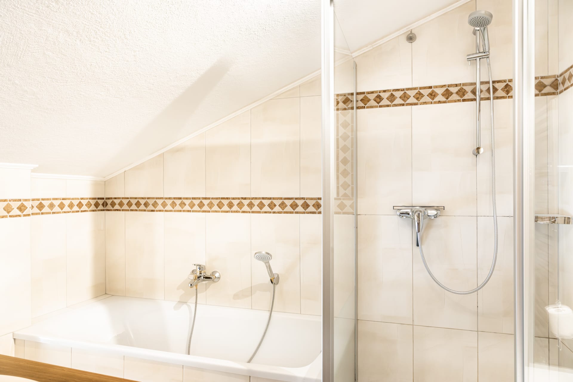 Die Ferienwohnung bietet Platz für bis zu 5 Personen und befindet sich im ruhigen Dachgeschoss. Sie verfügt über 2 separate Doppel-Schlafzimmer, ein Bad mit Dusche und WC, ein separates WC und eine vollausgestattete Wohnküche. Vom Balkon aus blickt ihr Richtung Steinbergbahn.