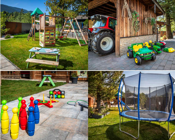Kinderbauernhof - ein echtes Abenteuer: für Kinder haben wir jede Menge Spielmöglichkeiten, wie ein Trampolin, einen Trettraktor mit Anhänger, einen Elektrotraktor oder ein Quad. Dazu einen großen Spielplatz mit Sandkiste, Schaukel und Rutsche sorgen für Spaß und Abenteuer. Während die Kleinen spielen, können die Eltern gemütlich auf der Terrasse entspannen.