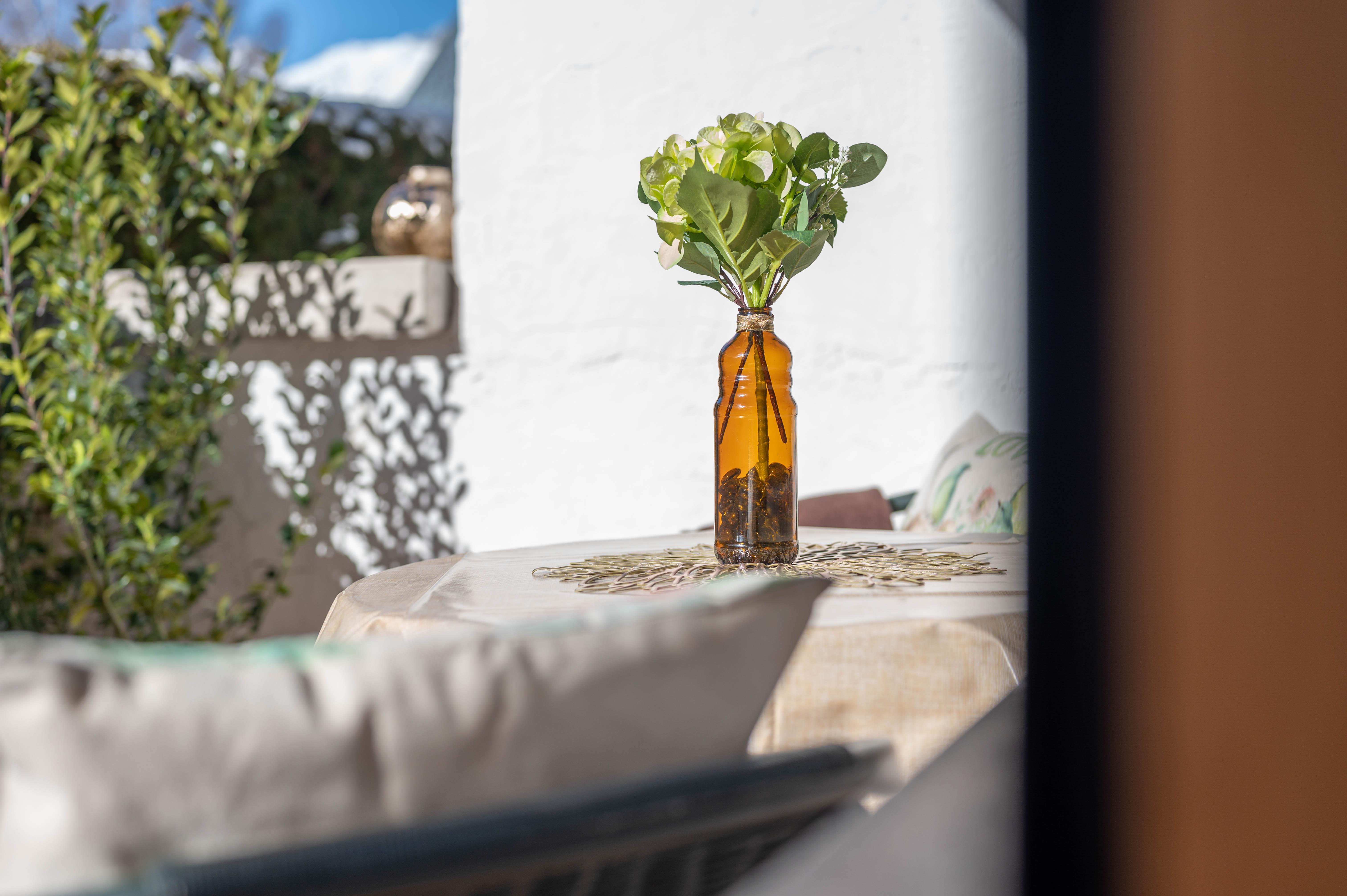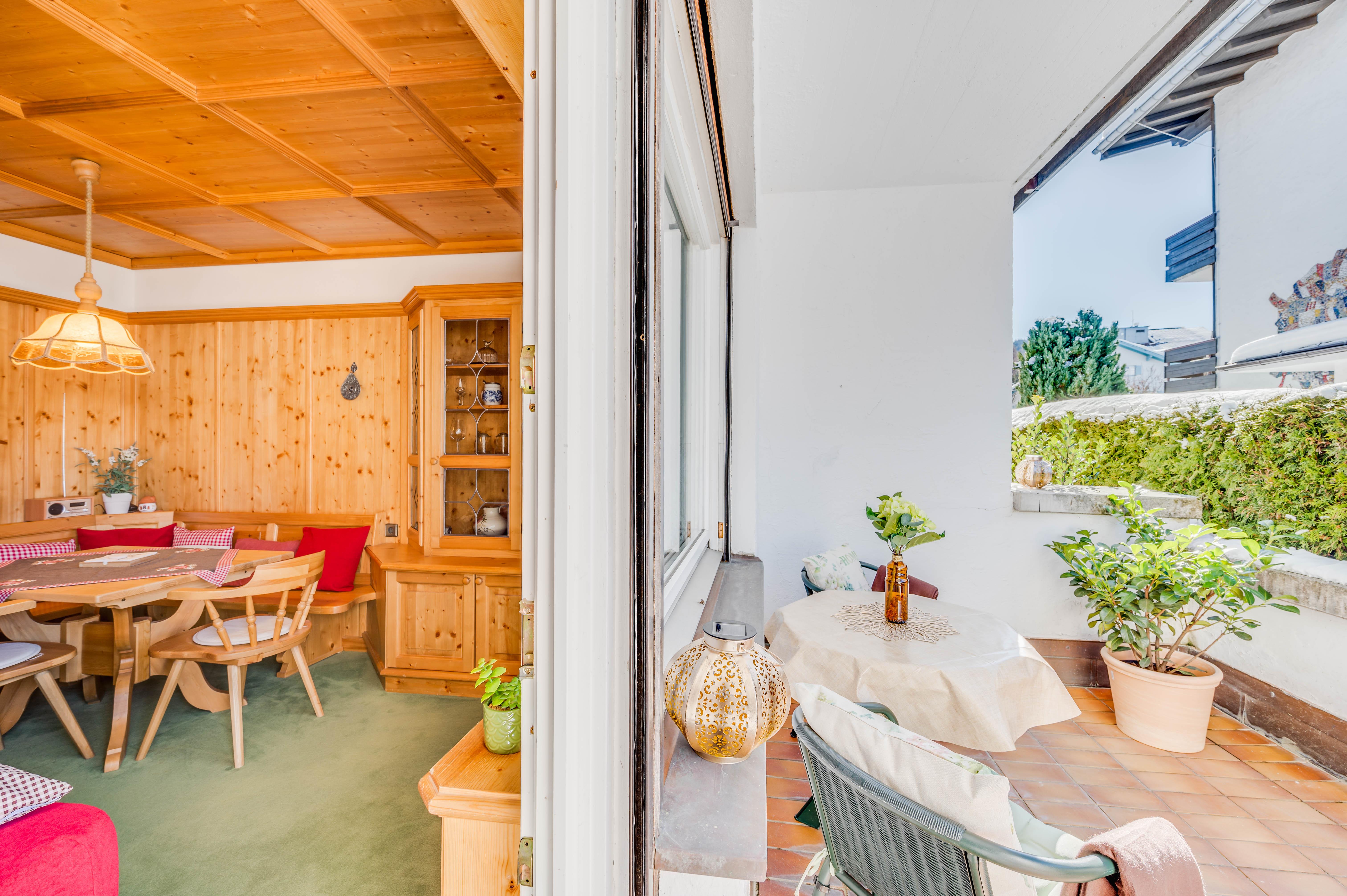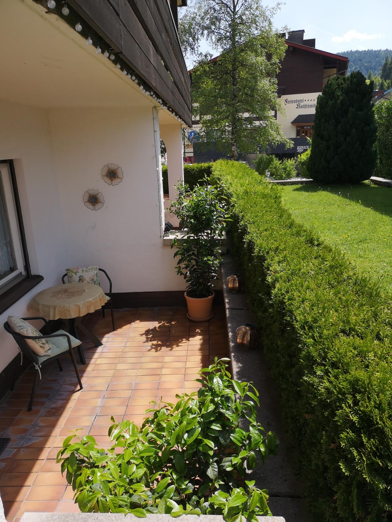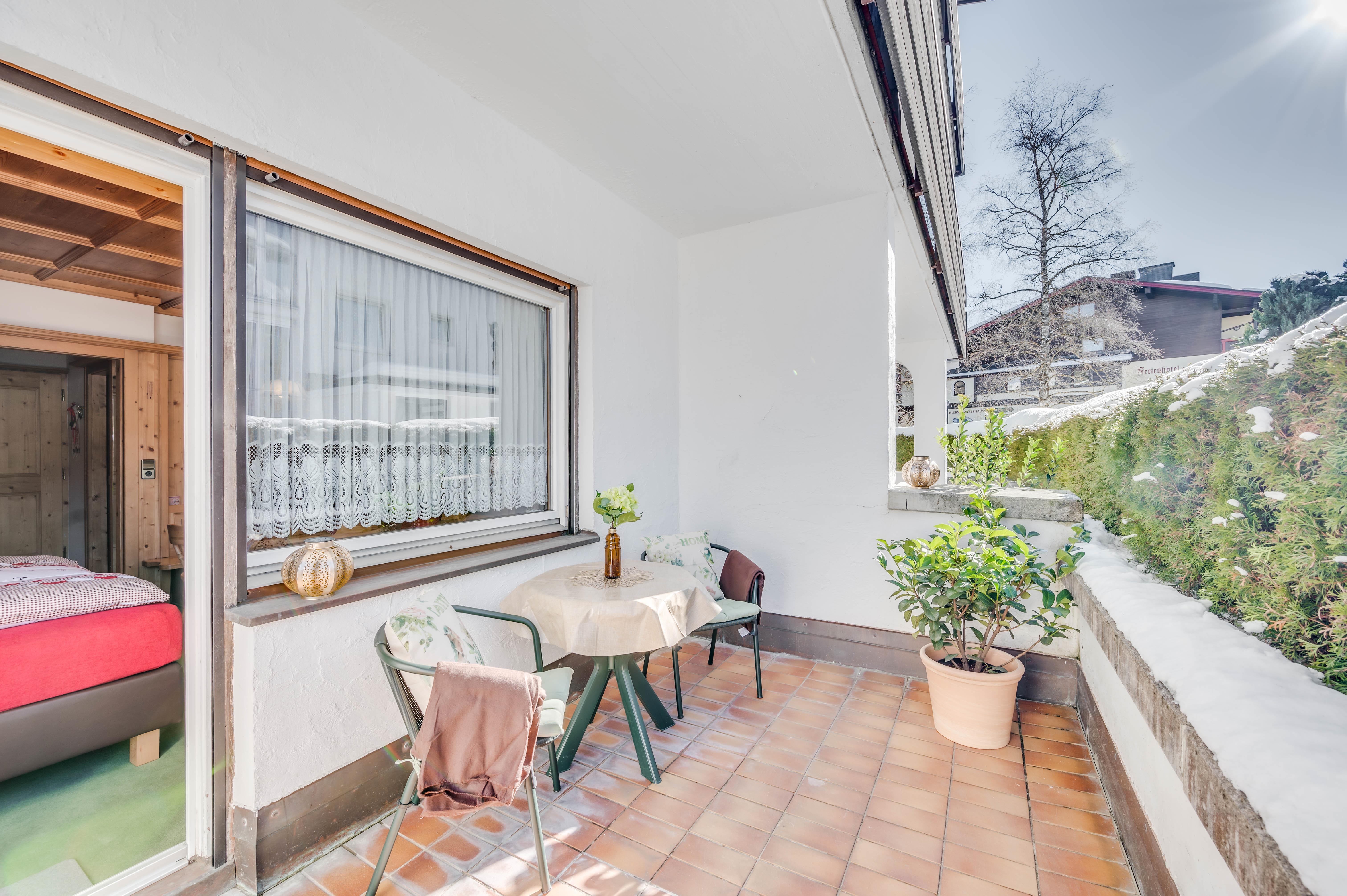 Zum Apartment gehört eine Westterrasse, wo man gemütlich frühstücken kann.