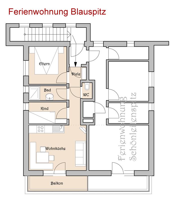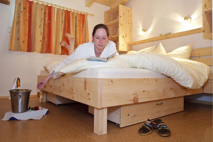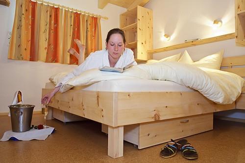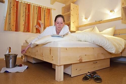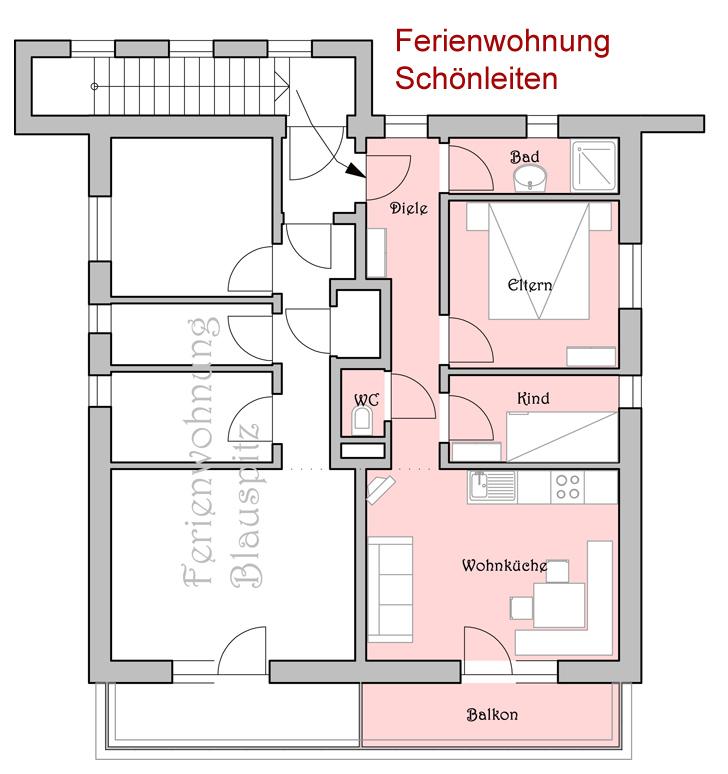 1 Ferienwohnung für 2 bis 4 Personen. Wohnfläche ca. 40 - 42 m². Küche, Schlafzimmer, Kinderzimmer, Bad, WC, Balkon, Sat-TV. Elternzimmer aus Zirbenholz, Kinderzimmer aus Fichtenholz.