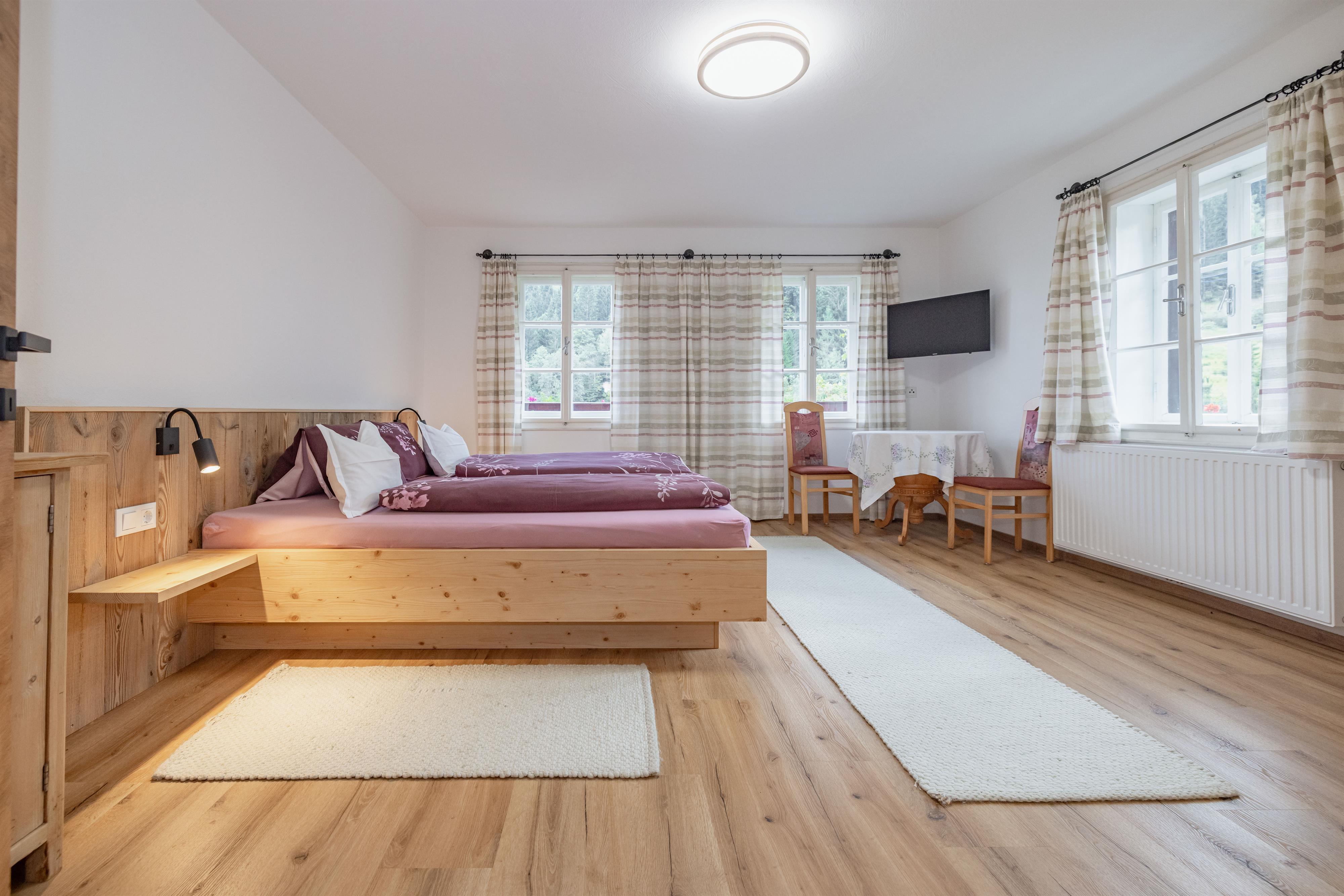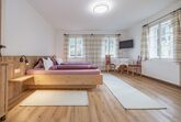 Als Familie wird diese Wohnung auch gern mit dem Doppelbettzimmer TIROL bezogen. Dieses Zimmer jedoch liegt separat im Obergeschoß und ist daher eher für ältere Kinder geeignet. Der Preis für Zimmer Tirol ist im Ferienwohnungenpreis nicht mit inbegriffen.