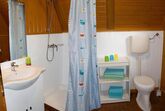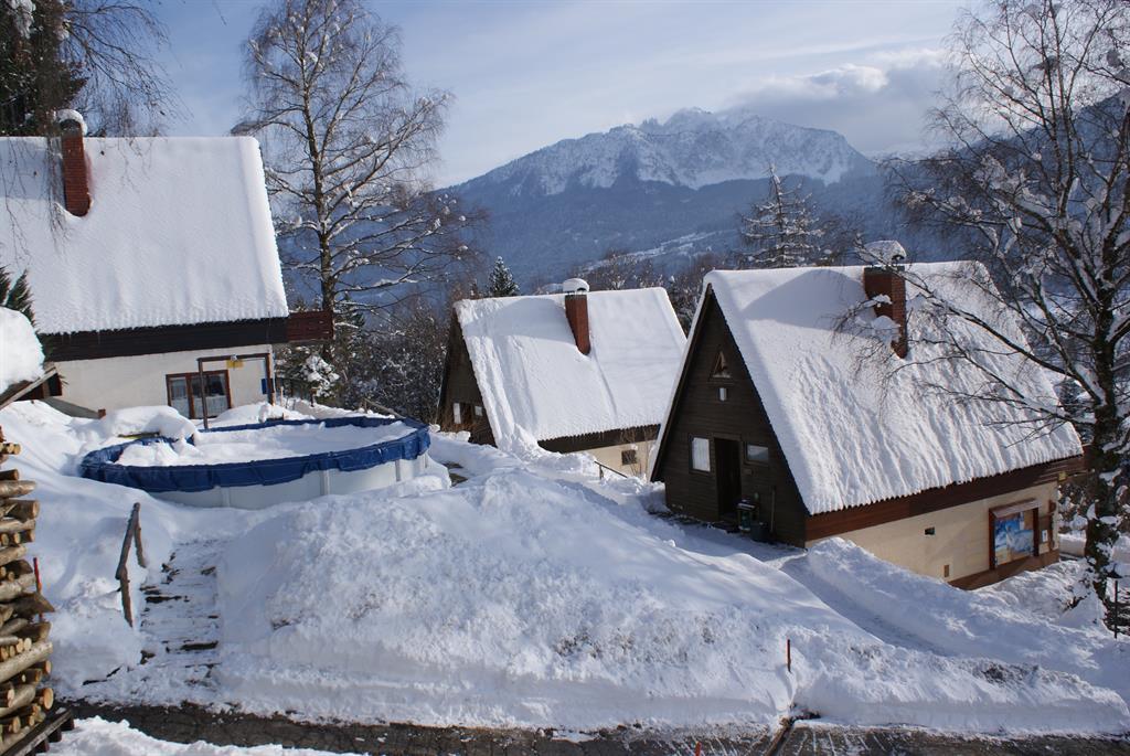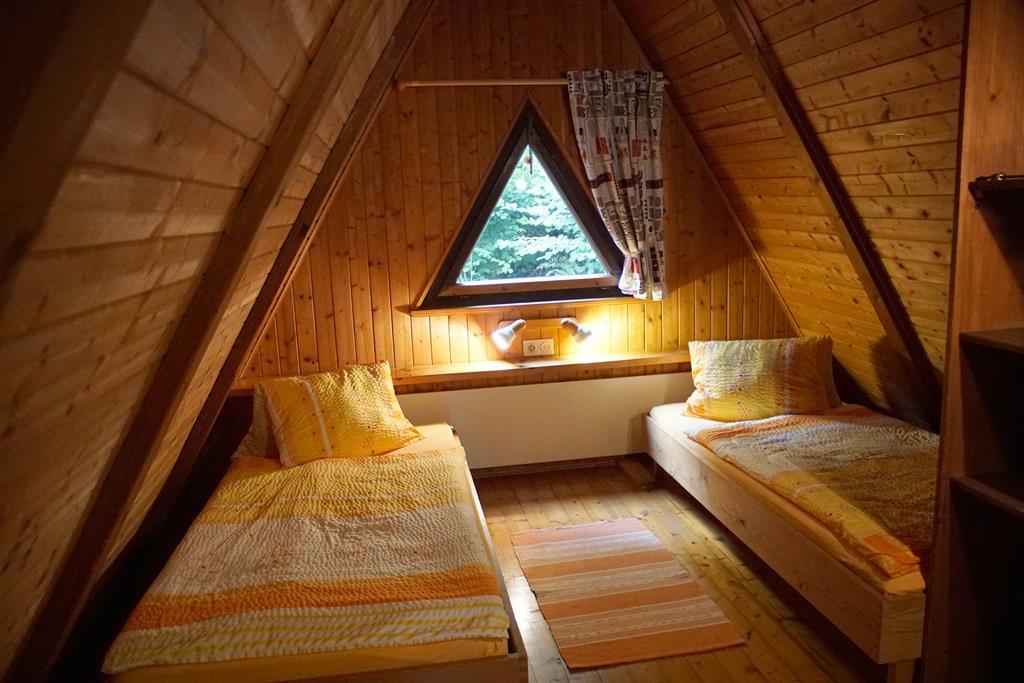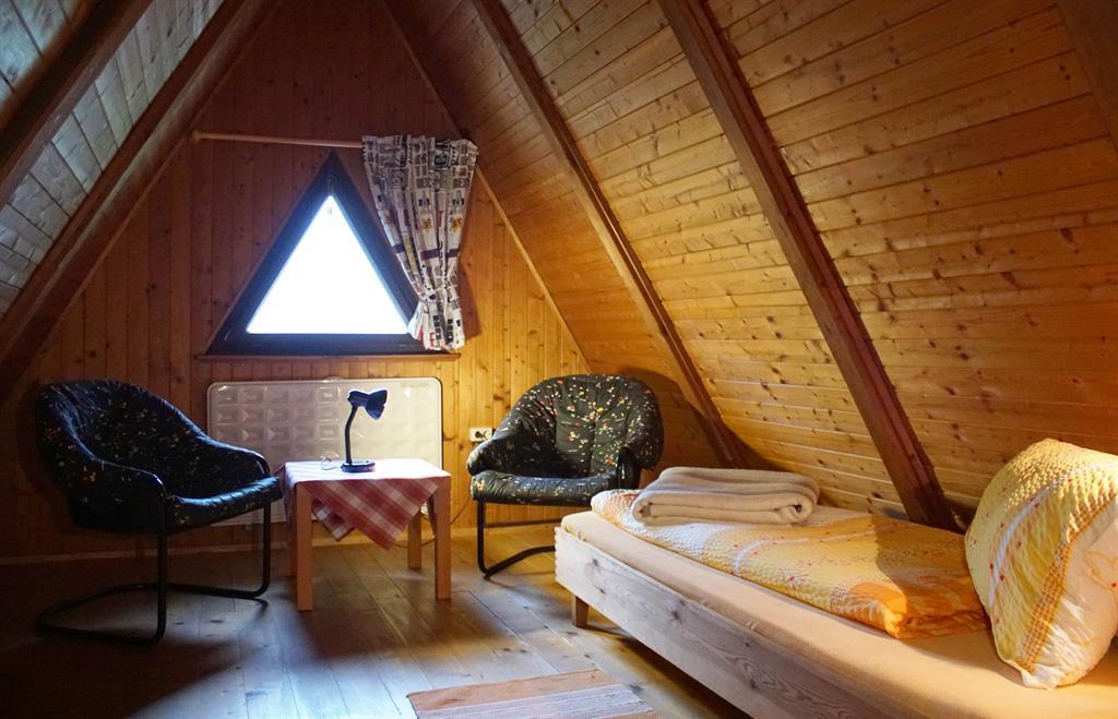 Die Ferienhäuser sind mit viel Holz im Hüttenstil eingerichtet.