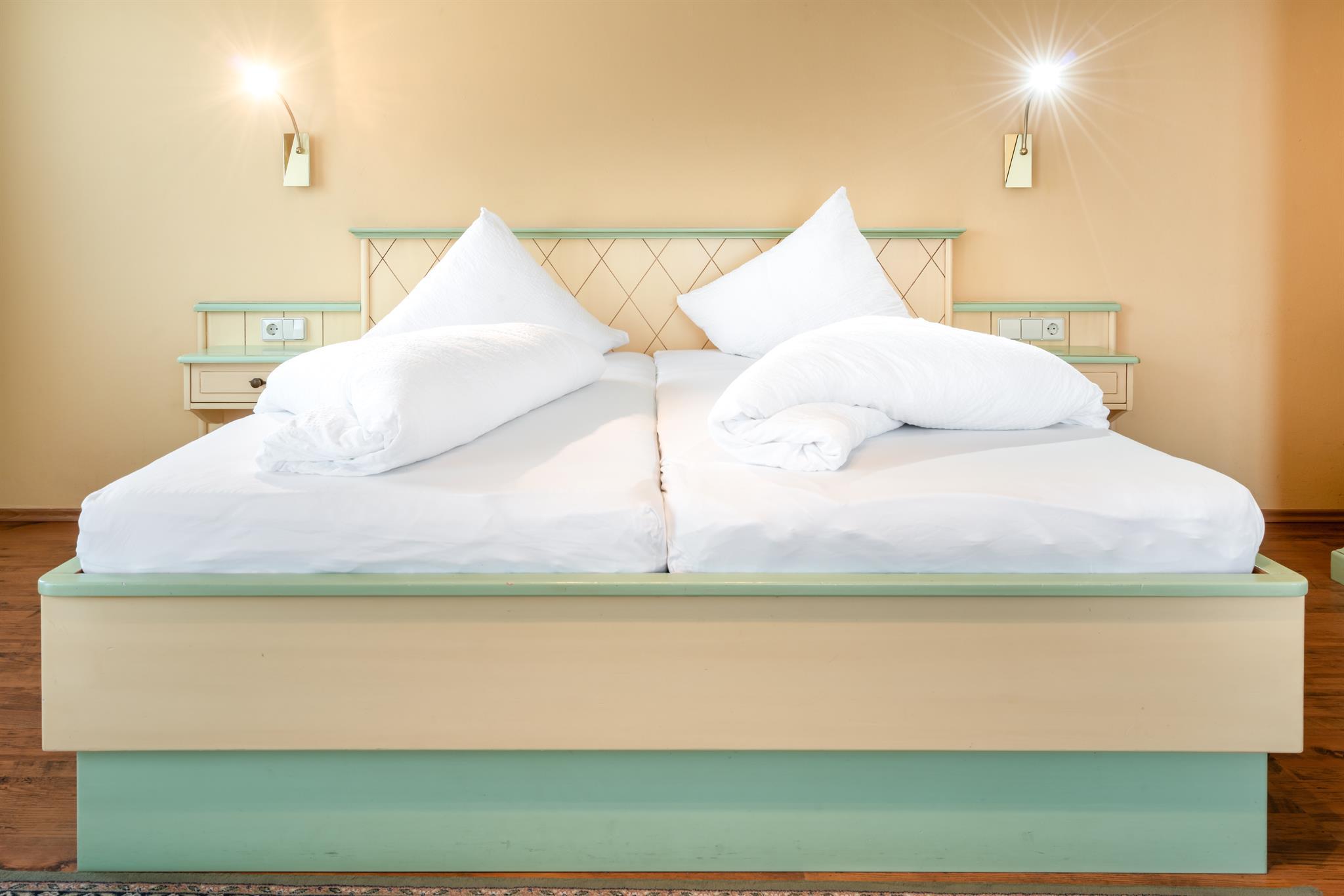 Die Betten selbst sind mit Hochqualitativen Matratzen ausgestattet und alle Betten sind Fußfrei. So stehen enspannenden Nächten nichts mehr im Wege.