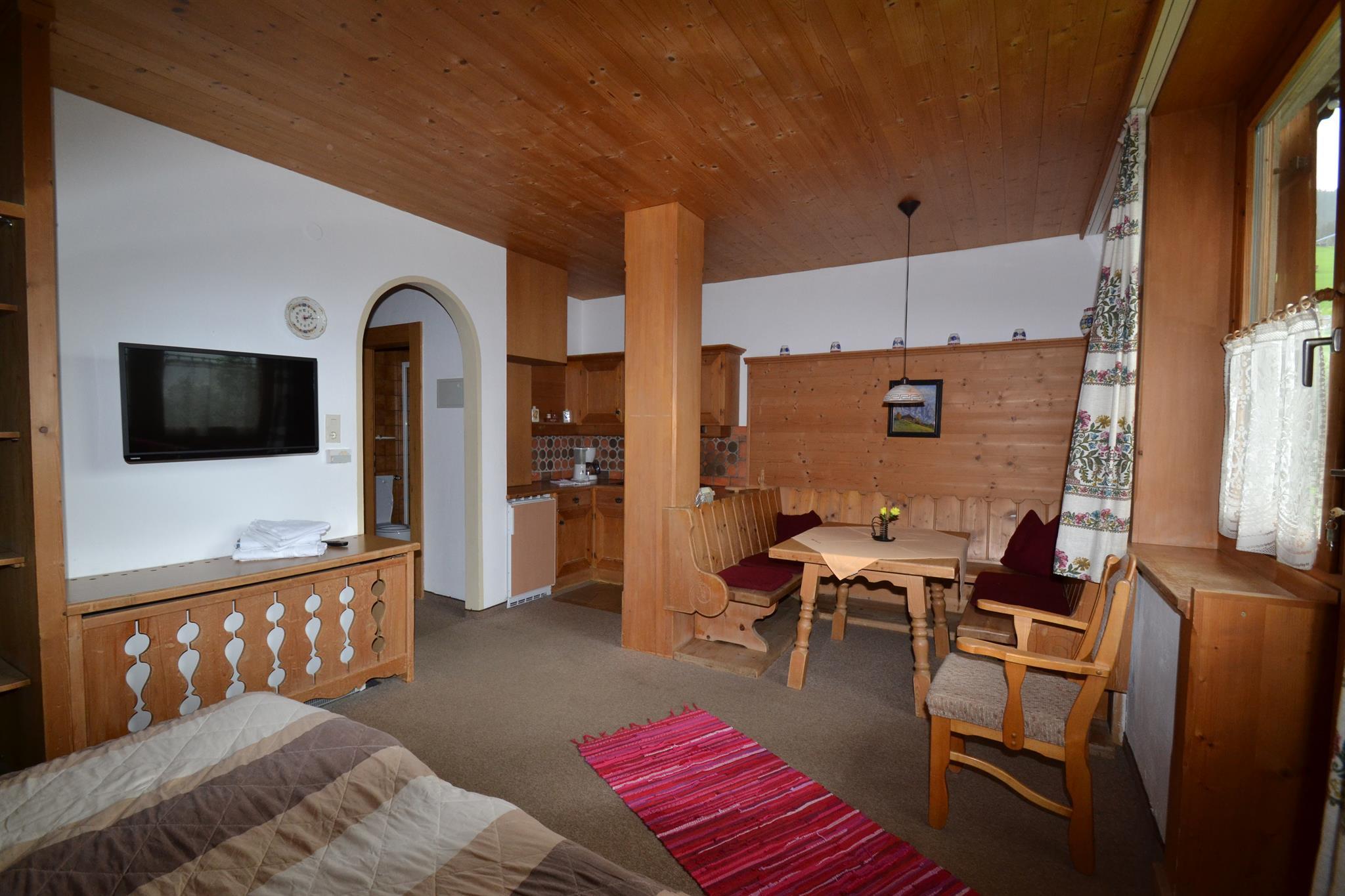 Wir verfügen über 6 gemütliche rustikal gehaltene, kinderfreundliche Appartements für 2-6 Personen sowie 3 Doppelzimmer mit DU/WC, und SAT-TV. Die Appartements werden vorwiegend mit Verpflegung gebucht, da die Küchen in den Appartements nur für die Zubereitung kleiner Speisen geeignet sind.