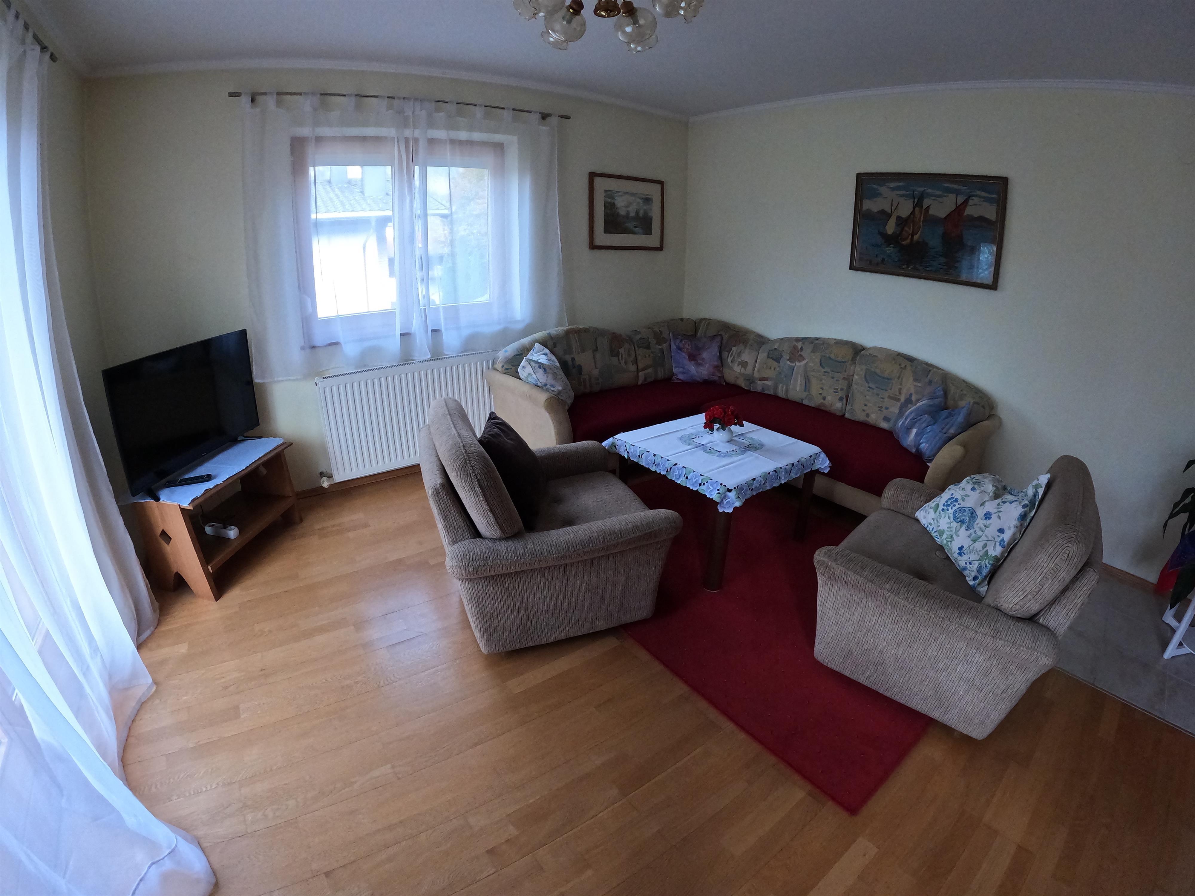 Die Ferienwohnung, am Fuße des Rofangebirges, ist umgeben von einem geschlossenen Gartengrundstück mit Wiese, Bäumen, Blumen und Sträuchern und befindet sich im ersten Stock des Hauses.