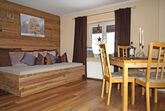 Zu jedem 45m² bzw. 80m² großen Appartement oder dem 90m² Ferienhaus zur Alleinbenützung gehört eine komfortable Wohnküche mit Geschirrspüler und ausziehbarer Couch, 1 bzw. 2 Schlafzimmer, Wohnraum, 1 oder 2 Bäder mit großer Glasdusche, 2 WC, Vorraum, Sat-TV und eine komplette Geschirr- und Wäscheausstattung. Weiters verfügt jedes Appartement über eine sonnige Terrasse mit Sitzecke, eigenem Garten und freiem Blick auf das Karwendelgebirge.