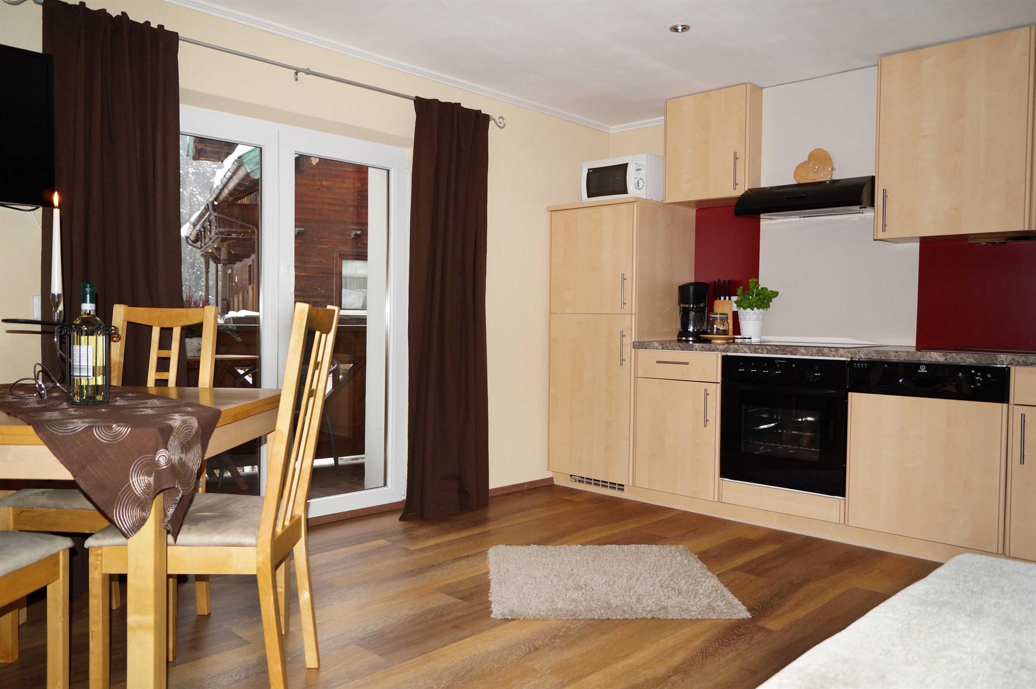 Das 90m² große Ferienhaus ist eingerichtet mit einer komfortablen und komplett ausgestatteten Wohnküche mit Geschirrspüler, Mikro, Backrohr und gemütlicher Liegecouch, einen Wohnschlafraum, 2 Schlafzimmer, 2 Bädern, 2 WC's, Vorraum und 2 Sat-TV, Balkon, Internetanschluß, Terrasse und Garten. Besondere Zusatzausstattung wie Bügeleisen, Wasserkocher, Toaster, Waschmaschine und Rodeln zum Ausleihen sind vorhanden.