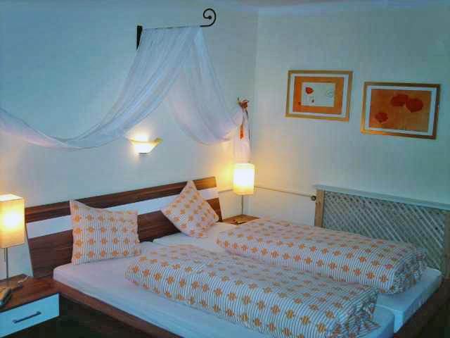 Die Ferienwohnung 3 besteht aus einem Wohnraum mit Küchenzeile, Essecke und südseitigem Balkon. Es gibt zwei Schlafzimmer mit jeweils eigener Dusche, WC und Balkon, sowie Sat-TV jeweils in allen drei Räumen.