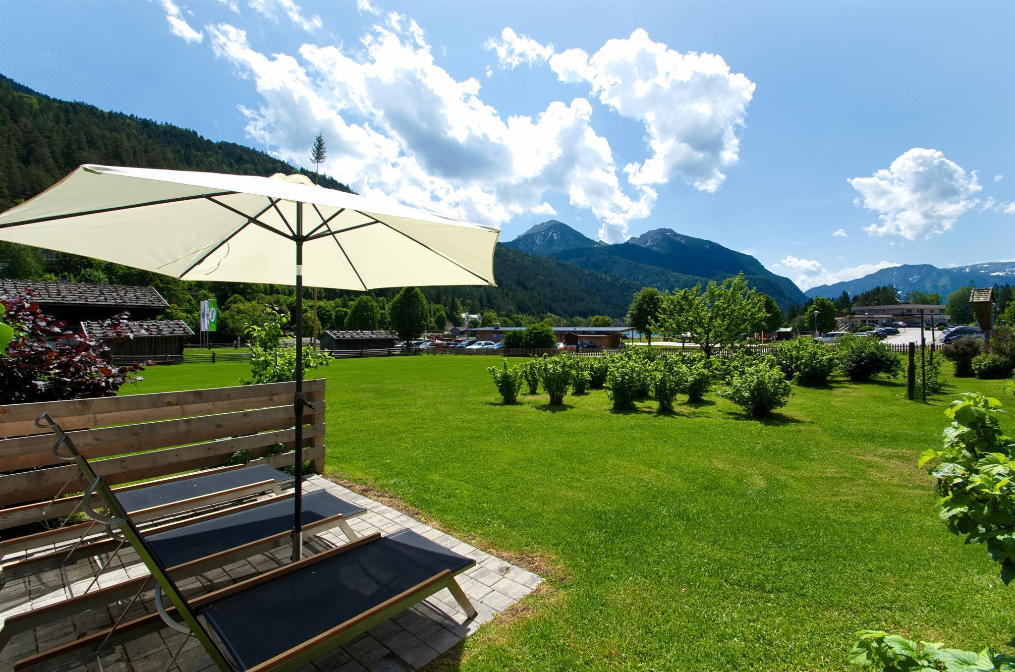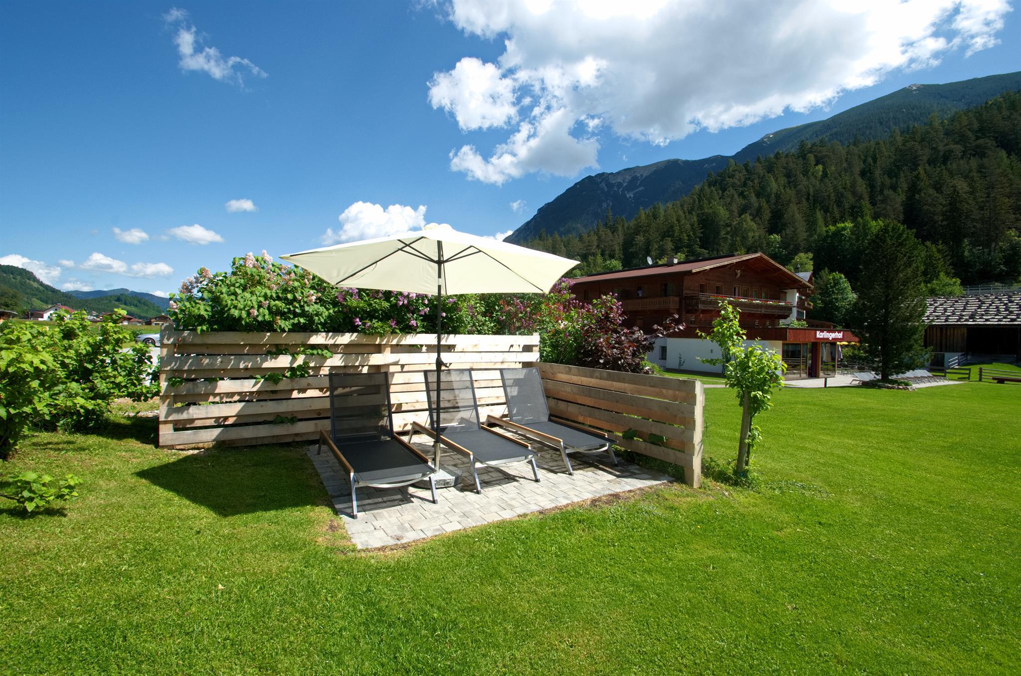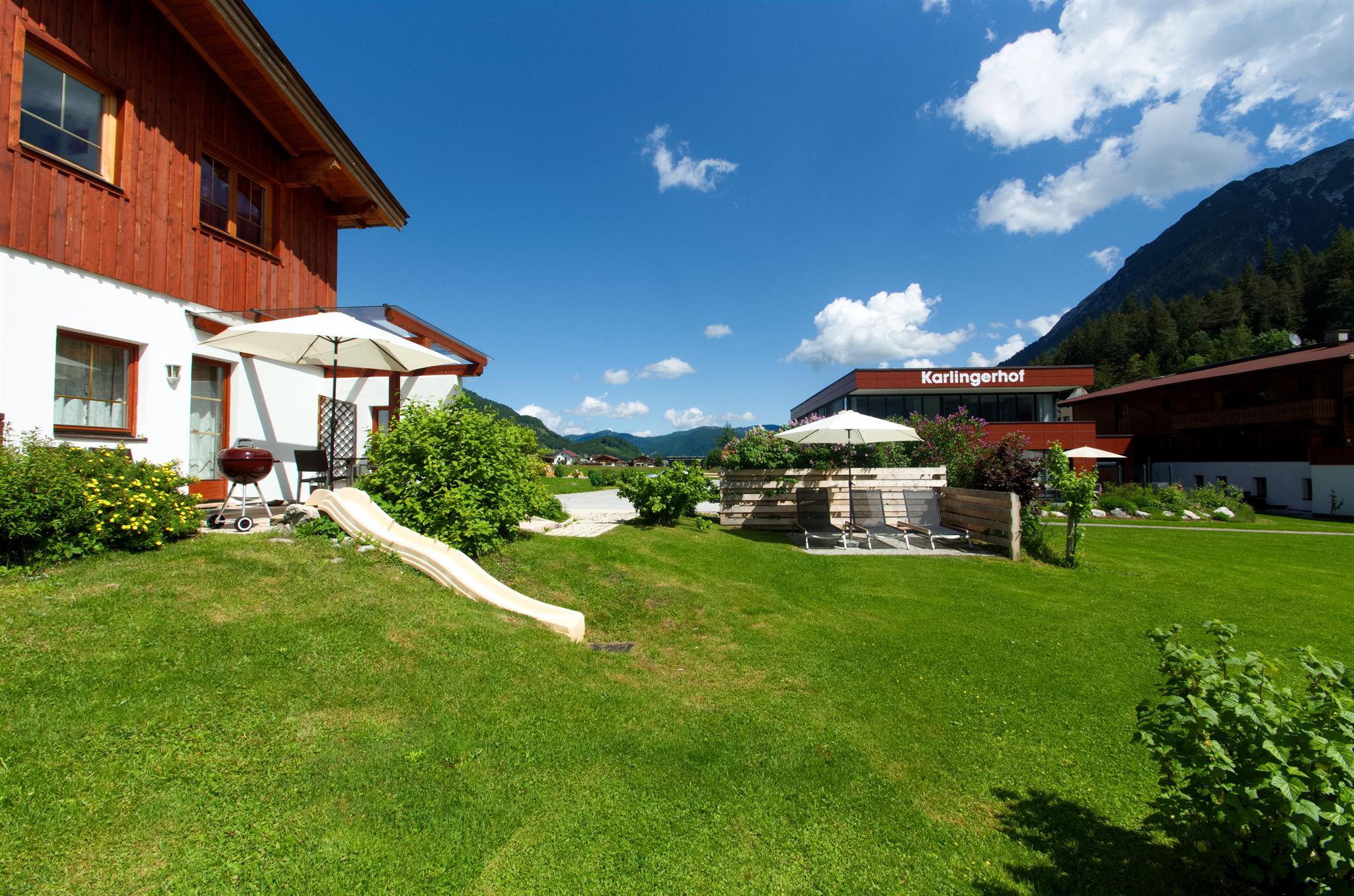 Unseren Gästen stehen alle Freizeiteinrichtungen im Karlingerhof sowie der Garten und die große Spielwiese zur Verfügung.