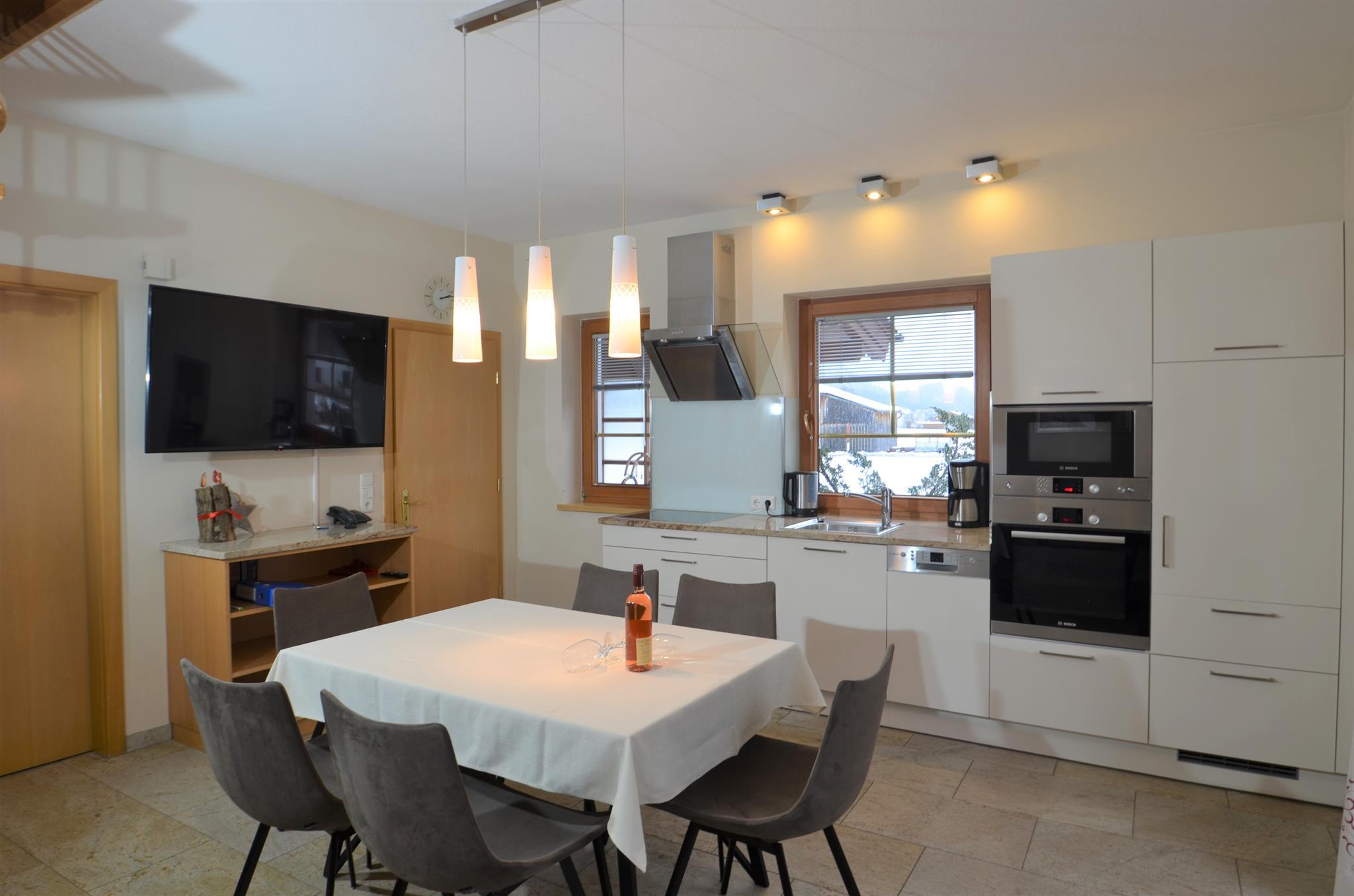 Die gemütliche Wohnküche befindet sich im EG und ist ausgestattetmit:Die gemütliche Wohnküche befindet sich im EG und ist ausgestattet mit: Induktionsherd; Backrohr; Mikrowelle; Geschirrspülmaschine; Kühlschrank mit Gefrierfach; Filterkaffeemaschine, Wasserkocher, Mixer, Toaster, Pürierstab; Geschirr für 10 Personen; Geschirrtücher, Handspülmittel und Tabs für die Spülmaschine; Große ausziehbare Ledercouch; Esstisch mit Bestuhlung; Flat-TV; Telefon +43 5246 530918; W-LAN kostenlos