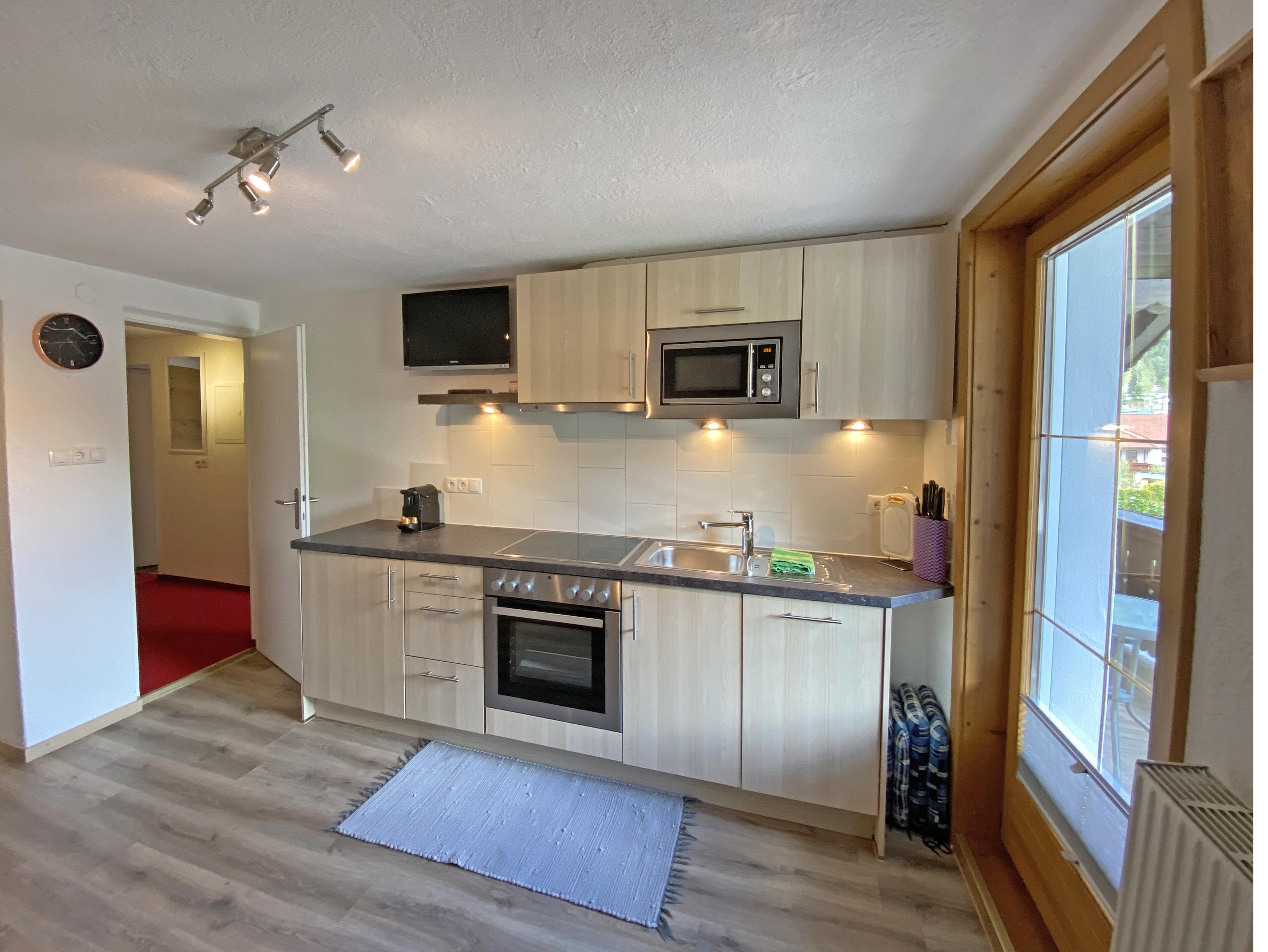 Wohnküche mit ausziehbarer Doppelcouch, Essecke,Herd mit Ceranfeld und Backrohr, DU/WC, Spülmaschine, Flachbild SAT-TV, Föhn, Radio, Südbalkon,2.Etage,WLan gratis