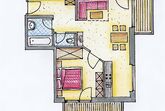 Geräumige Ferienwohnung mit 55m² mit einem Schlafzimmer, Wohnraum, Bad mit Dusche/Badewanne, separatem WC sowie Balkon.