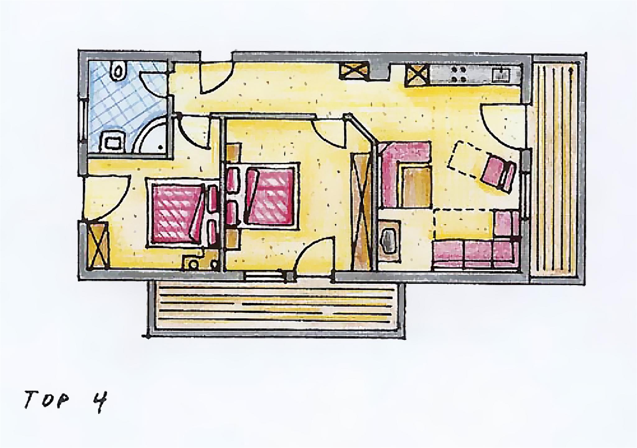 Geräumige, freundlich und hell eingerichtete 70m² große Wohnung mit drei Balkonen zur Ost-, Süd- und Westseite. Die Wohnung bietet 2 Schlafräume, 1 Wohnraum, Dusche oder Badewanne, WC, Sat-TV und eine top ausgestattete Küche.