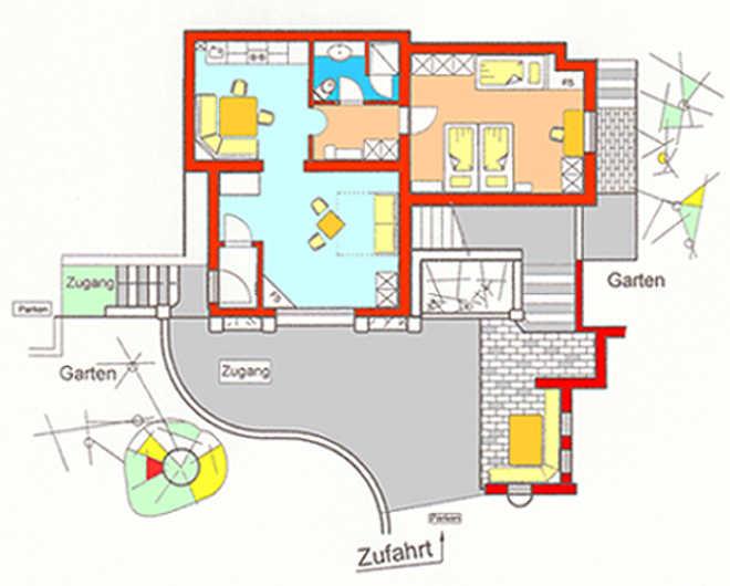 Appartement im Erdgeschoß Zugang ohne Treppe,Gartenlaube;