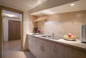 Geräumiges, vollausgestattetes Appartement mit Kochecke, Wohnzimmer, Badezimmer, Dusche/WC, Föhn, Radio, Flat-TV, Balkon mit schöner Aussicht (Berg-Seeblick) sowie Bettwäsche und Handtücher.