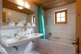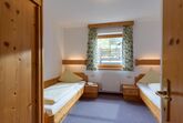 1 Schlafzimmer mit Doppelbett, 1 Schlafzimmer mit 2 Einzelbetten, jeweils mit großem Kleiderschrank, Wohn-Schlafzimmer mit ausziehbarer Doppelcouch, gemütliche Sitzgarnitur mit Flatscreen-TV, Essecke, separate Küche mit 4-Platten-E-Herd, Mikrowelle, Wasserkocher, Kaffeekocher, Toaster und Küchenutensilien. Badezimmer mit Dusche oder Badewanne, p.P. 1 Handtuch und 1 Badetuch, separates WC. Großer Balkon, Liegewiese mit Schaukel und Rutsche. Waschmaschine und Wäschetrockner befinden sich im Keller (Benützung gegen Gebühr).