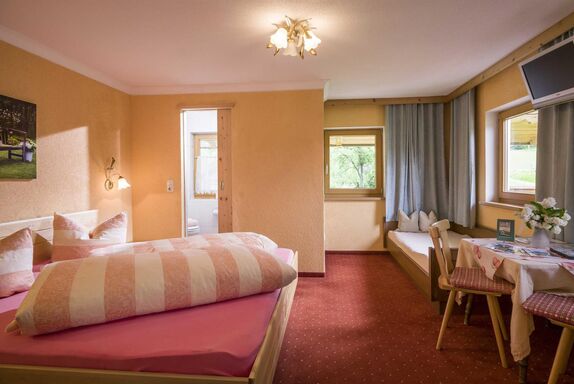 Hoftypische Besonderheiten: Unser Haus ist eine zentral gelegene Frühstückspension. Im gemütlich eingerichteten Frühstücksraum, verwöhnen wir Sie mit hofeigenen BIO-Produkten wie Eier, hausgemachten Marmeladen, Honig, Butter, Speck und Bauernbrot. (Frühstücksbuffet). Ein schmucker Bauerngarten und weites Weideland umgeben den Bauernhof.