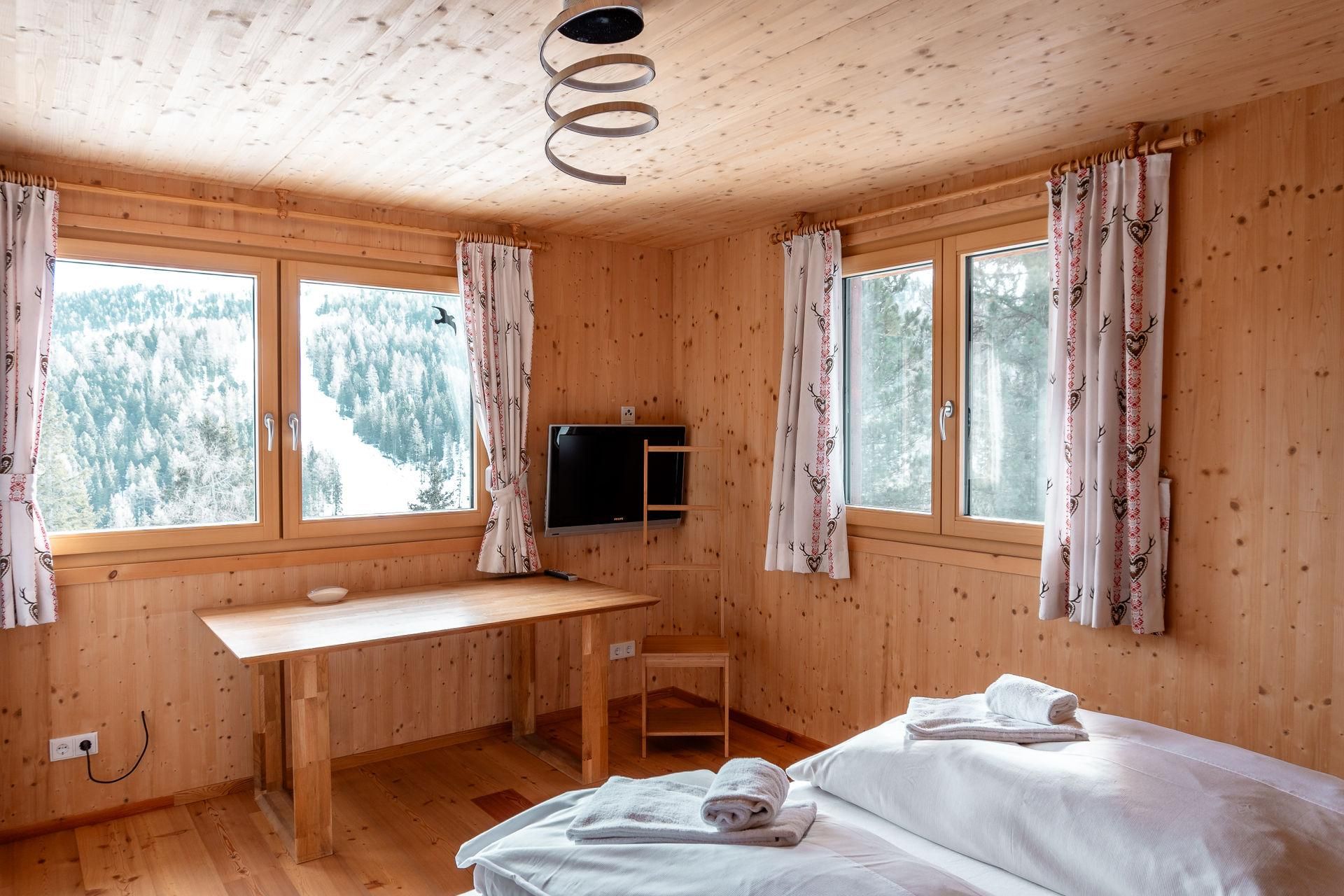 Das freistehende Chalet bietet einen Blick auf die gegenüberliegende Skipiste. Im Sommer hörst du die Kuhglocken auf der Bergwiese. Auf der großen Dachterrasse nach Süden kannst du in aller Ruhe die Sonne und die Aussicht genießen. Wir haben das Ferienhaus im Jahr 2014 komplett modernisiert, ohne den ursprünglichen Charme zu beeinträchtigen. Im Erdgeschoss findest du eine geräumige offene Küche mit einem fantastischen Kachelofen. Dieser sorgt nicht nur für angenehme Wärme, sondern ist auch ideal für Slow Cooking. Unser Chalet wird durch Erdwärme beheizt, eine bewusste Nachhaltigkeitswahl, die sich auch in der Verwendung vieler Materialien im Ferienhaus widerspiegelt. Im Erdgeschoss gibt es neben dem Wohnzimmer auch ein Schlafzimmer und ein modernes Badezimmer. Dadurch eignet sich das Chalet auch sehr gut für 2 Personen, ohne dass ihr euch in einem viel zu großen Ferienhaus verloren fühlt. Die anderen drei Schlafzimmer befinden sich eine Etage tiefer. Hier gibt es ein zweites Badezimmer. Eine Etage tiefer findet ihr unseren Spa-Bereich. Eine Sauna, ein Whirlpool, eine beheizte Sitzbank und eine gemütliche Ruheecke vervollständigen unser Wellnessangebot. Durch die Hanglage sind alle Etagen oberirdisch. Unser Chalet verfügt über eine geräumige überdachte Parkgarage, in der auch eure Skier aufbewahren könnt und eure Skischuhe beheizt werden. Und vielleicht am wichtigsten: Der Skibus hält direkt vor unserer Tür, aber es ist auch möglich, direkt von unserer Hütte auf eine Skipiste zu fahren.