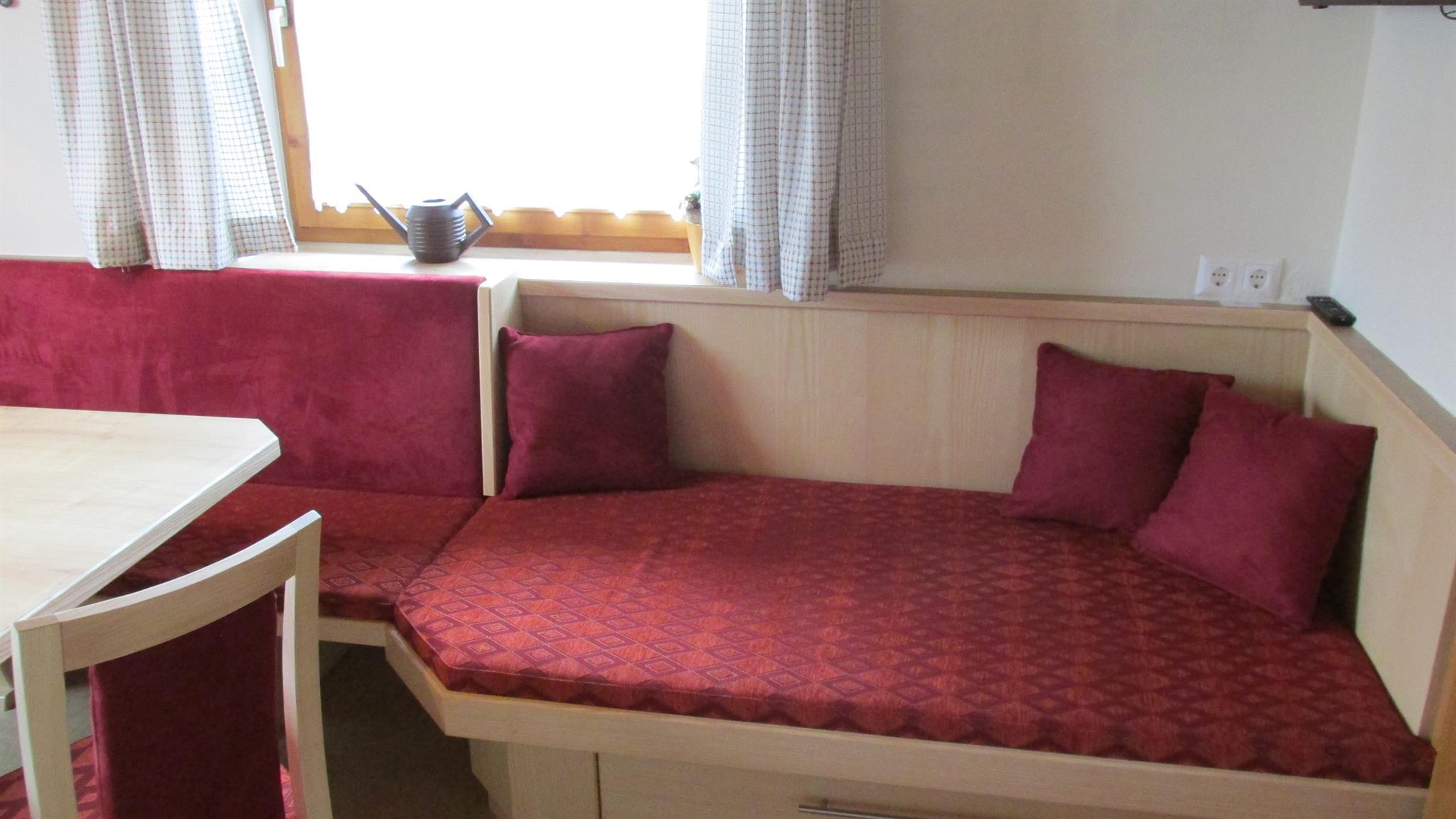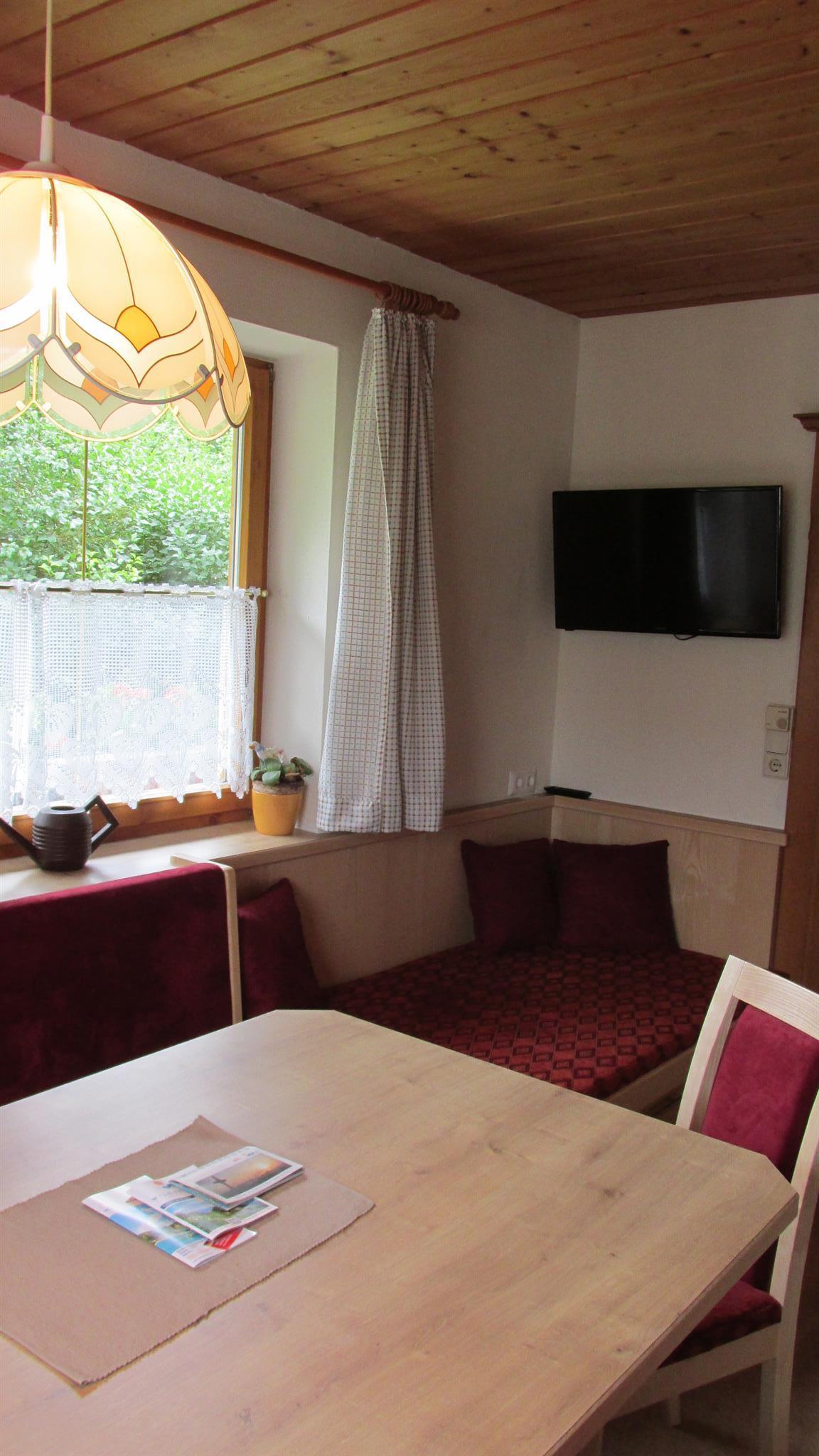 Weiters befindet sich dort ein großer Tisch, mit Eckbank und 3 Stühlen und eine gemütliche Liege mit TV Gerät.
