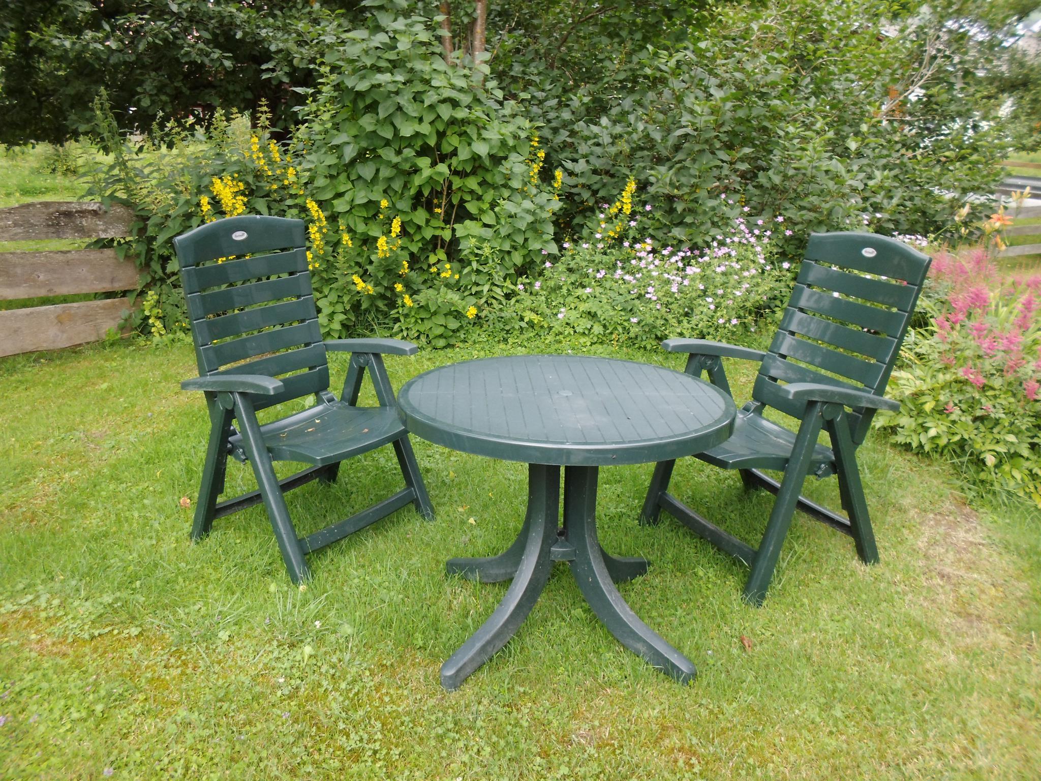 Der Balkon ist zur Südseite ausgerichtet mit Bergblick und man kann auch im Garten gemütlich sitzen.