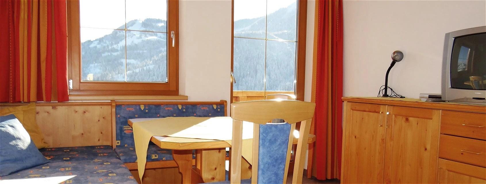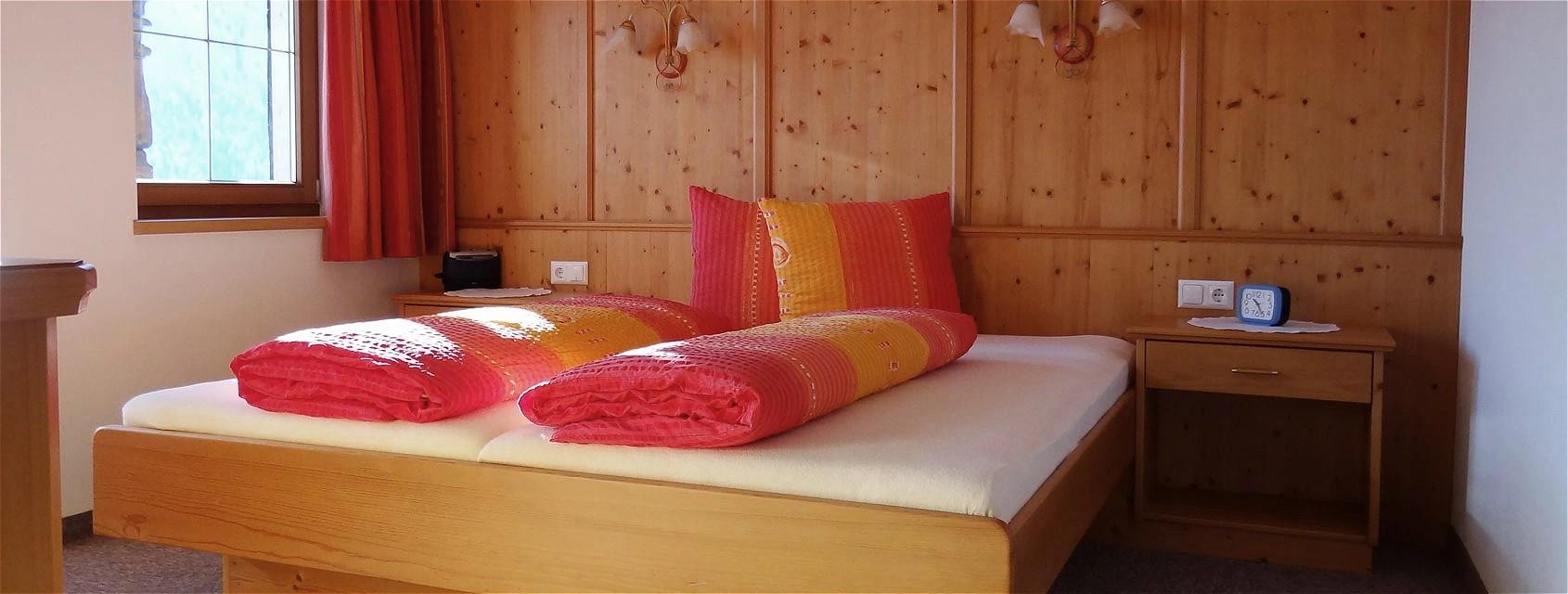 Die Ferienwohnung „Marchbachjoch (48 m2) für 2 Personen ist komplett eingerichtet mit einem Schlafzimmer, Wohn-/ Schlafraum mit Kachelofen, Sat-TV, Küche (Ess- und Kochgeschirr, Kühlschrank, E- Herd, Geschirrspüler, Kaffeemaschine, Toaster), eigenem Abstellraum, Bad mit Dusche / WC, Bettwäsche- und Handtuchservice, Terrasse mit Liegestühlen, einem Garagenabstellplatz Zusätzlich zum Grundpreis werden EUR 60,- für die Endreinigung pro Aufenthalt/ Wohnung verrechnet. Haustiere nach Absprache.