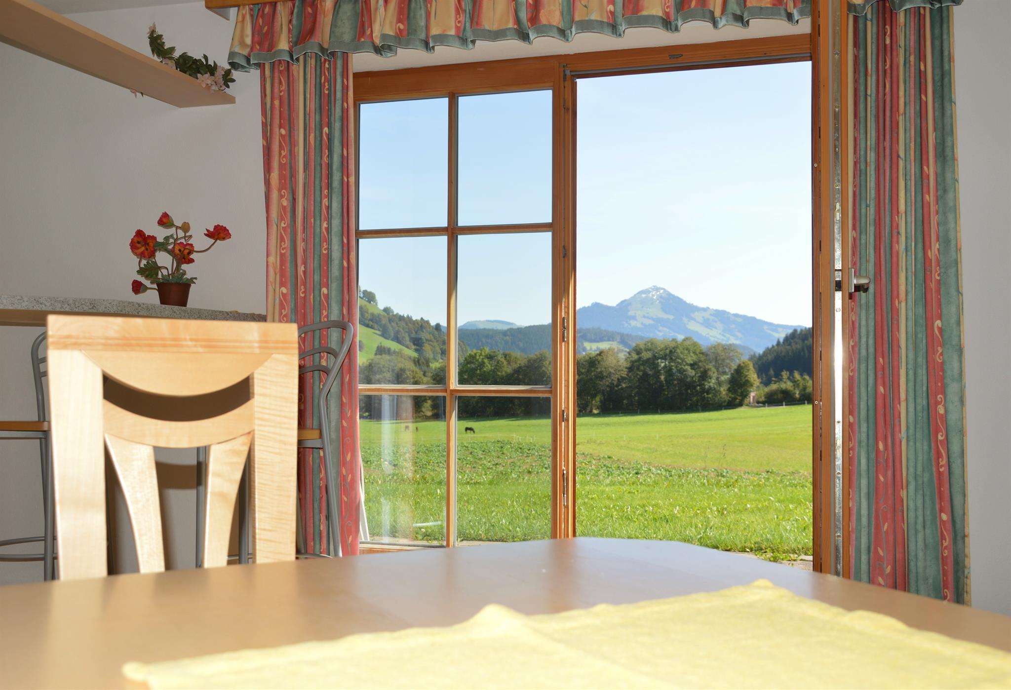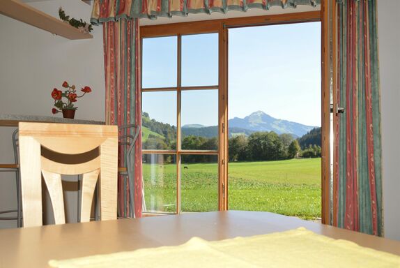 Appartement mit Bergblick 2 - 5 Personen Mit Bergblick auf die Hohe Salve, umrahmt von den Wäldern die sich talauswärts neigen. Das ist der Ausblick der auf dich wartet, wenn du deinen Morgen Kaffee auf der Terrasse des Appartements, in der Küche oder im Wohnzimmer genießt. Die Küche ist voll ausgestattet mit Geschirr und Küchengeräten wie: Kaffeemaschine, Wasserkocher, Spülmaschine, Elektroherd, Backofen und Kühlschrank. Der Eingangsbereich verfügt über eine komfortable und großzügige Garderobe.