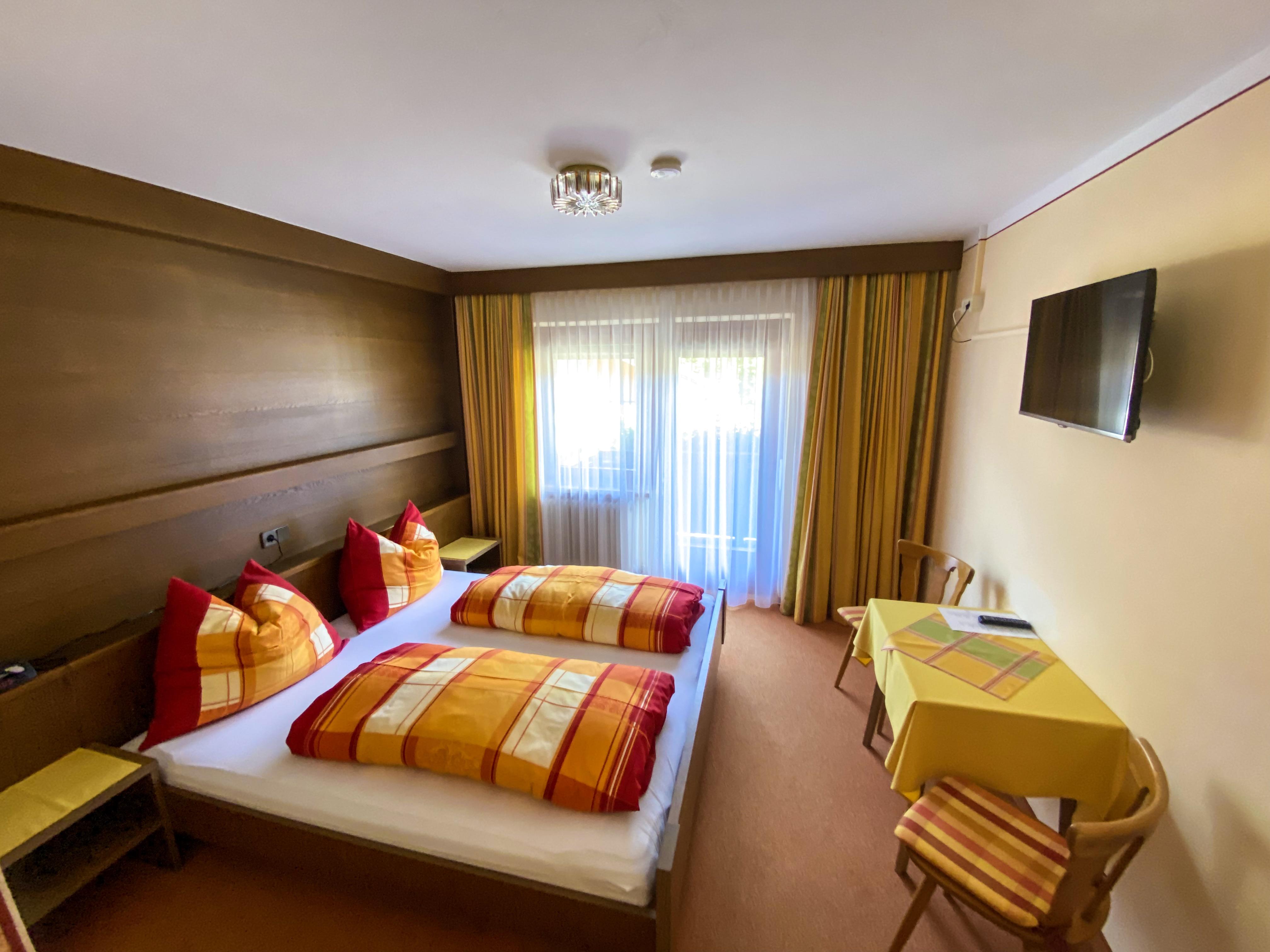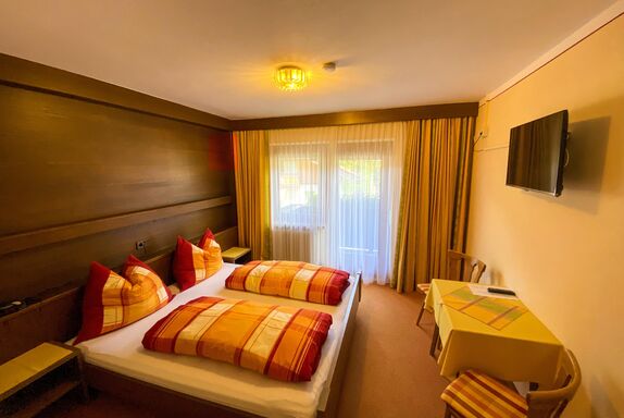 Doppelbettzimmer mit Dusche/WC, Balkon, Zimmersafe, Kabel-TV, Radio, Gratis W-LAN, Bergblick, reichhaltiges Frühstück