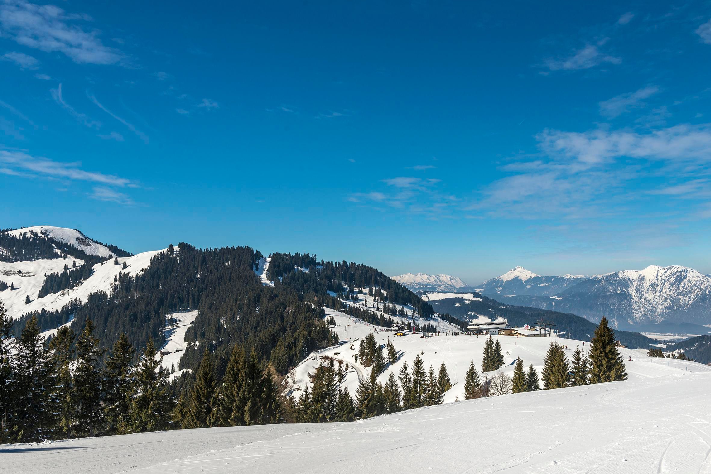 Grosszügiger Balkon mit herrlicher Aussicht auf die umliegenden Skipisten.