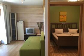 Helles, freundliches 2-Raum-Appartement für 2 bis 4 Personen mit modern eingerichteter Kochnische inkl. Mikrowelle, Dusche, WC, SAT-TV und eigener Sonnenterrasse.