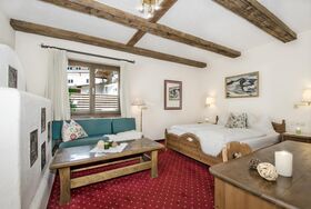 ca. 25 m², DoppelBOXspringbett, rustikale Möblierung,Balkon oder Terrasse, Badezimmer mit Badewanne oder Dusche/WC, Kabel-TV, Zimmersafee, wlan