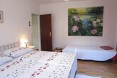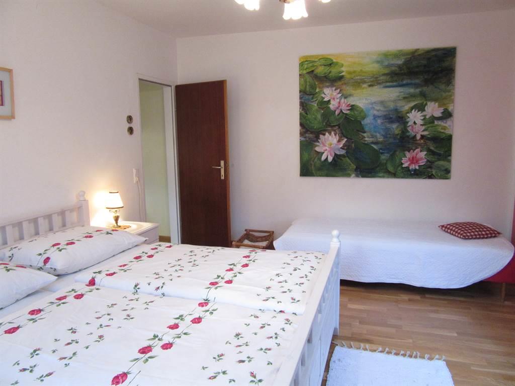 Gemütliche Ferienwohnung mit direktem Zugang zum Garten! 75m2 Wohnfläche. Ein geräumiges Schlafzimmer mit Doppelbett und einem Einzelbett, Wohnzimmer mit Terrasse und direktem Zugang zum Garten, Esszimmer, eine sehr gut ausgestattete Küche mit Abstellraum, Badezimmer mit Dusche/WC. Sofa im Wohnzimmer kann zu einer Komfort-Schlafcouch für 2 Personen ausgezogen werden. Freies Wifi
