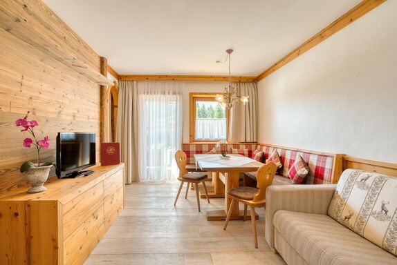 Genießen Sie die ruhige Lage inmitten der Natur und fühlen Sie sich ganz wie zu Hause in einem der komfortablen Apartments. Unser Angebot umfasst Kinderbetten und Kinderhochstühle, damit auch die kleinen Gäste sich wohlfühlen. Zudem liegen wir direkt an der Ski-/Wander-/Bushaltestelle, für unbeschwerte Ausflüge in alle Richtungen.