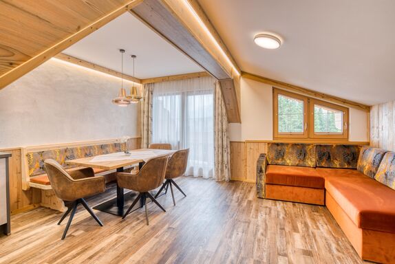 Genießen Sie die ruhige Lage inmitten der Natur und fühlen Sie sich ganz wie zu Hause in einem der komfortablen Apartments. Unser Angebot umfasst Kinderbetten und Kinderhochstühle, damit auch die kleinen Gäste sich wohlfühlen. Zudem liegen wir direkt an der Ski-/Wander-/Bushaltestelle, für unbeschwerte Ausflüge in alle Richtungen.