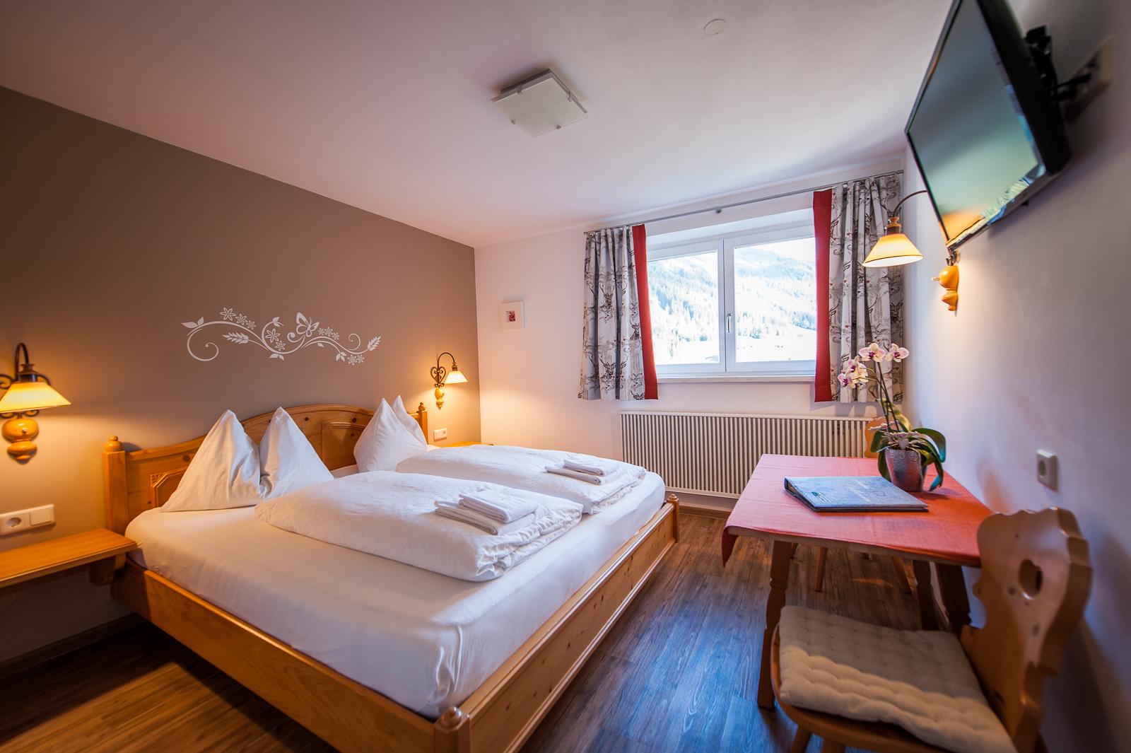 Das Doppelzimmer ist 22m² groß, befindet sich im Bauernhaus im 2. Stock und ist mit einer kleinen Küche,(Kühlschrank, Wasserkocher, Kaffeemaschine, Mikrowelle,…) Essplatz, DU/WC, Flachbild-Kabel TV und kostenlosen WLAN ausgestattet.