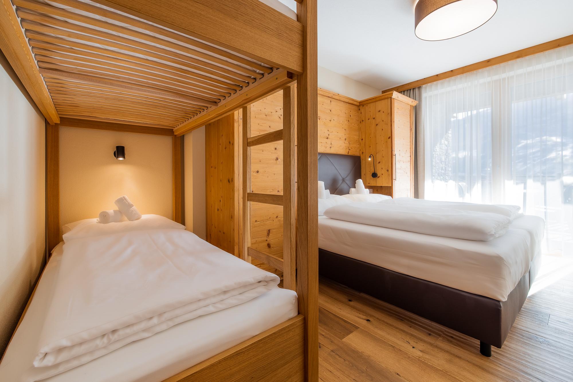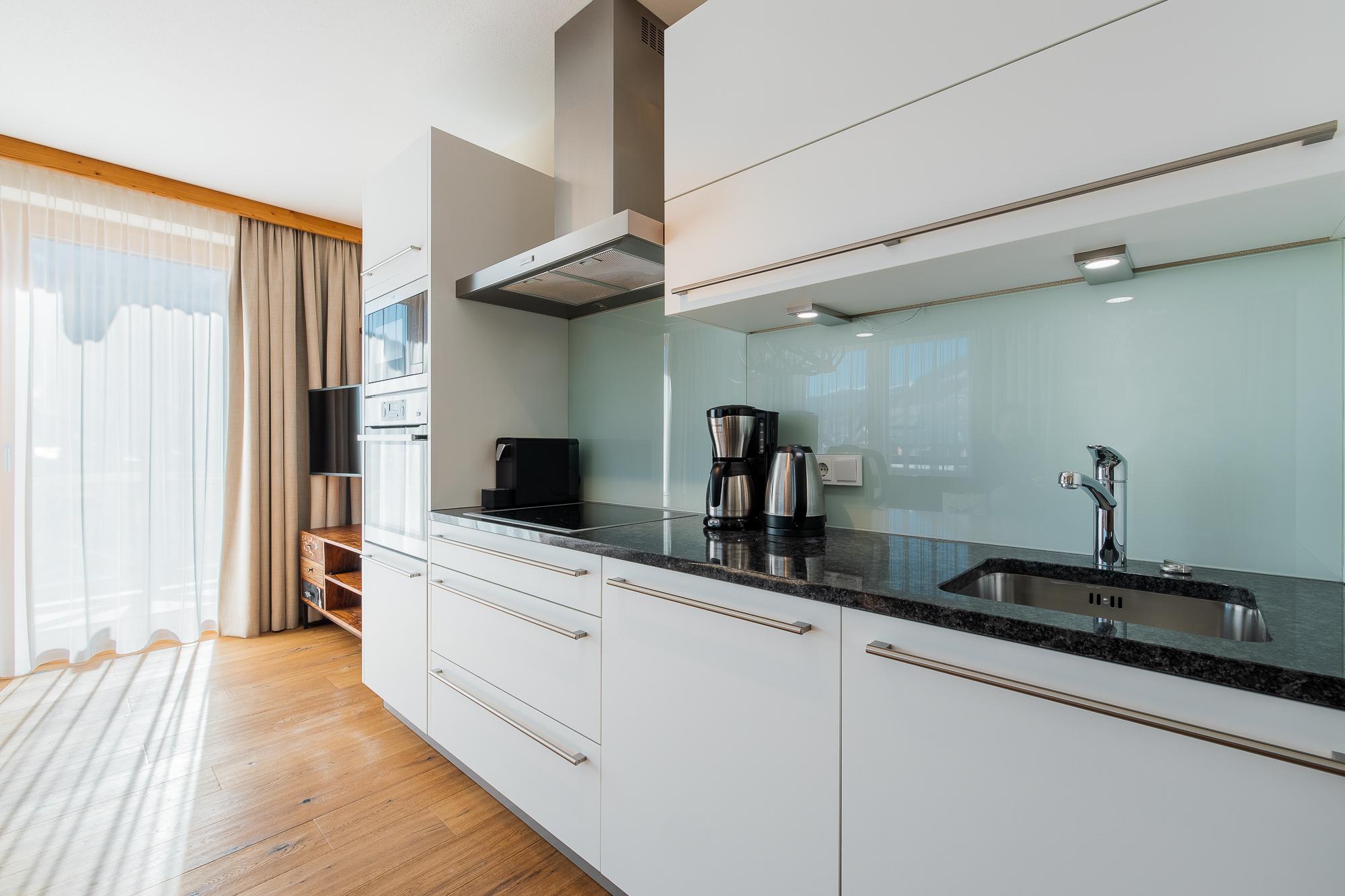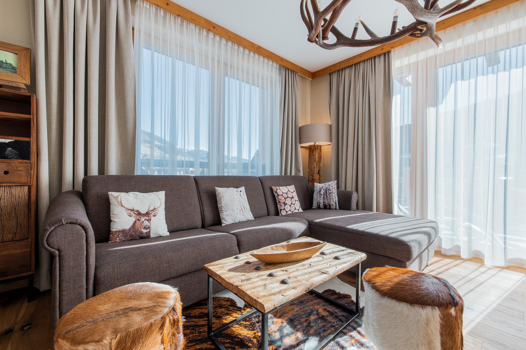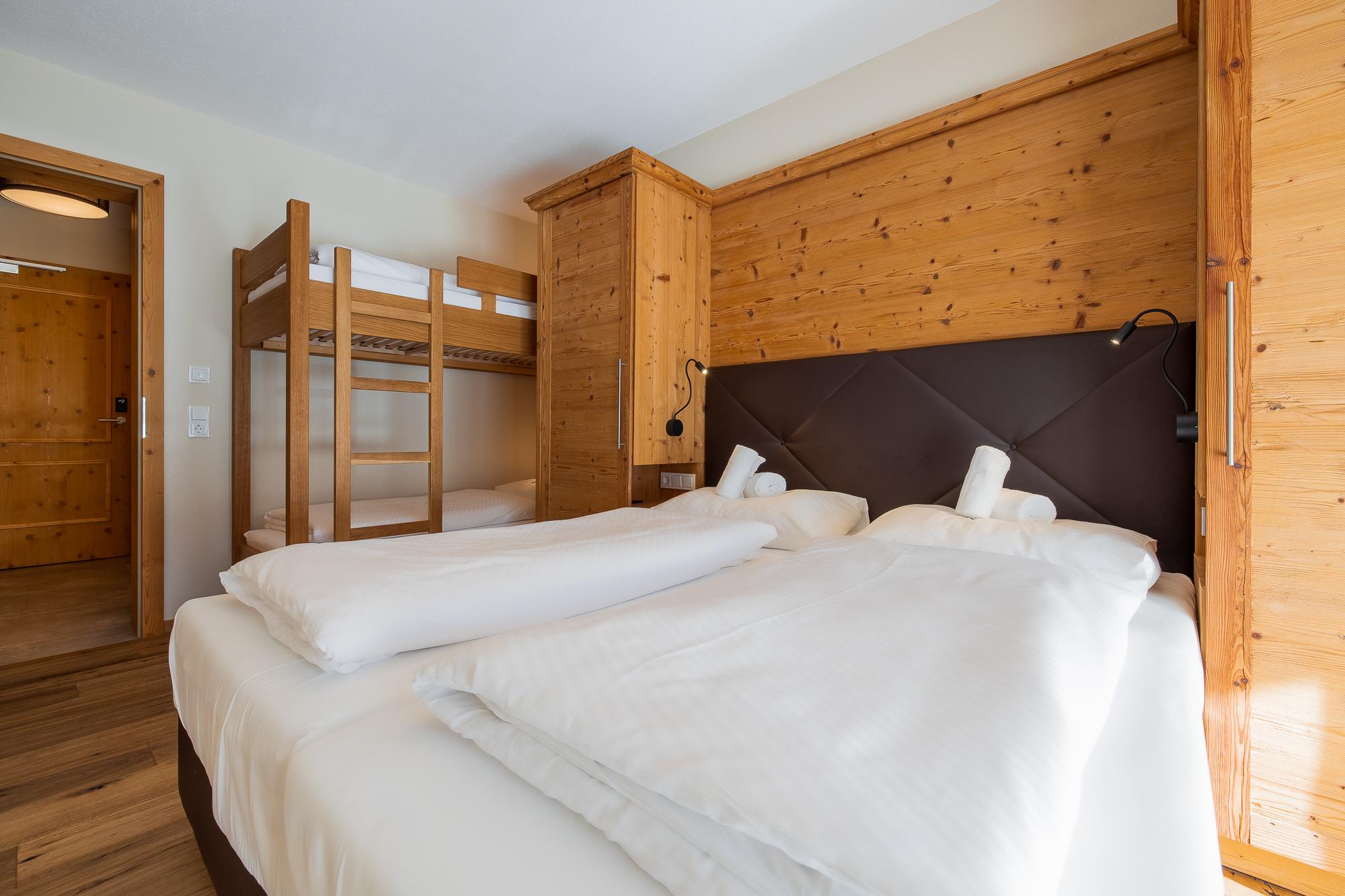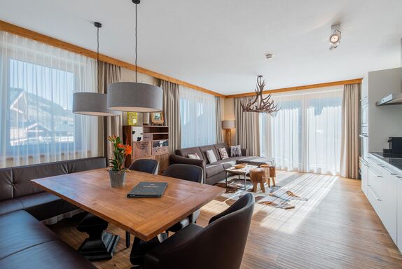 Das hochwertige Apartment bietet eine Terrasse oder einen Balkon mit herrlichem Blick auf den Nationalpark Hohe Tauern. Das geschmackvolle und gemütliche Wohnzimmer ist teilweise mit einer komfortablen Schlafcouch für 2 Personen (auf Anfrage; EUR 15,00 pro Person/Tag; Bezahlung vor Ort) und LCD Flat-TV und Video on Demand ausgestattet. Die hochwertige, offene Küche bietet viel Komfort und ist neben Markengeräten auch noch mit Wasserkocher, Filterkaffee- und Espressomaschine, Toaster, Küchenutensilien und Geschirr ausgestattet. Das Schlafzimmer mit einem King Size-Boxspringbett und einem Stockbett verfügt über Flat-TV und einem direkten Zugang zu Balkon/Terrasse. Es gibt ein hochwertiges Badezimmer mit Badewanne im Apartment