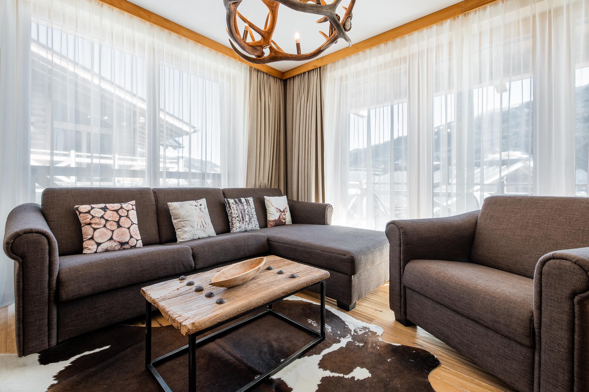 Das stilvolle Penthouse einen Balkon mit herrlichem Blick auf den Nationalpark Hohe Tauern. Der geschmackvoll gestaltete Wohnbereich ist mit einem Kamin, LCD Flat-TV, Video on Demand und teilweise mit einer komfortablen Schlafcouch für 2 Personen (auf Anfrage; EUR 15,00 pro Person/Tag; Bezahlung vor Ort) ausgestattet. Das Penthouse verfügt über kostenloses WLAN. Die Küche bietet viel Komfort und ist neben Markengeräten auch noch mit Wasserkocher, Filterkaffee- und Espressomaschine, Toaster, Küchenutensilien und Geschirr ausgestattet. Die 3 Schlafräume mit je einem King Size-Boxspringbett verfügen alle über Flat-TVs. Außerdem gibt es 2 hochwertige Badezimmer mit Badewanne oder Dusche und ein Gast-WC im Penthouse