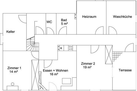 Unsere 70m² (im EG) große Ferienwohnung für 2-5 Personen, mit sonniger Terrasse, Gartenmöbel und Grillmöglichkeit teilt sich auf in, 2 getrennte Schlafräume, ein Doppelbettzimmer und ein Dreibettzimmer, ein Bad mit Dusche, separates WC sowie ein Wohn-Esszimmer mit Küchenblock und Ess- bzw. Sitzecke.