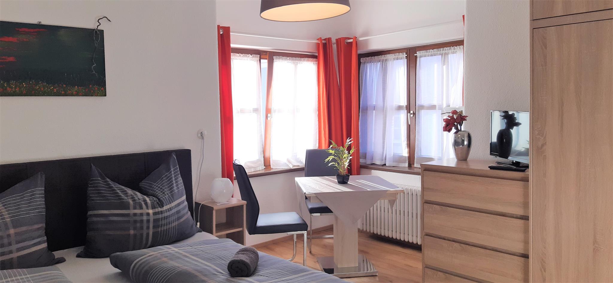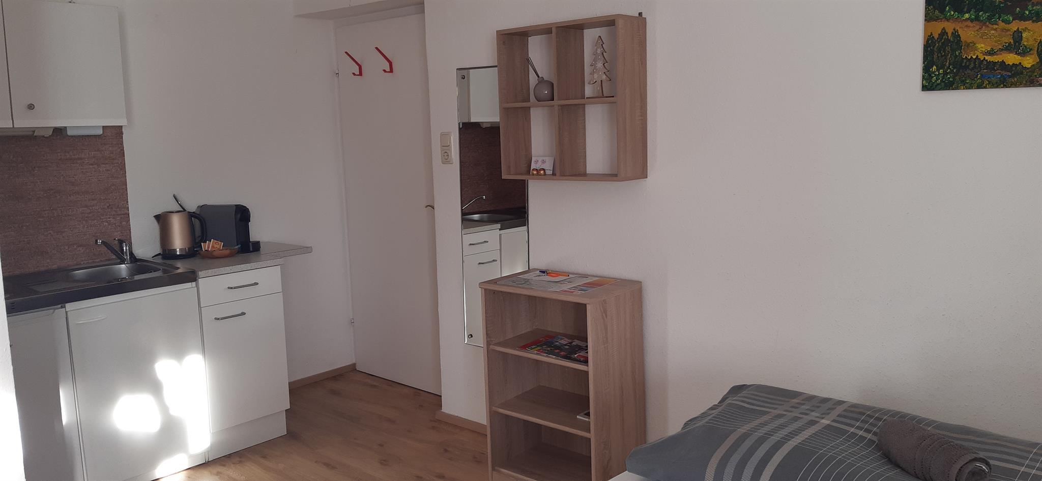 Klein-Appartment (20 m²) mit Bad/Dusche/WC und kleiner Küchenecke. Doppelbett (Kingsize) 1. Stock Nichtraucher Handtücher und Bettwäsche vorhanden