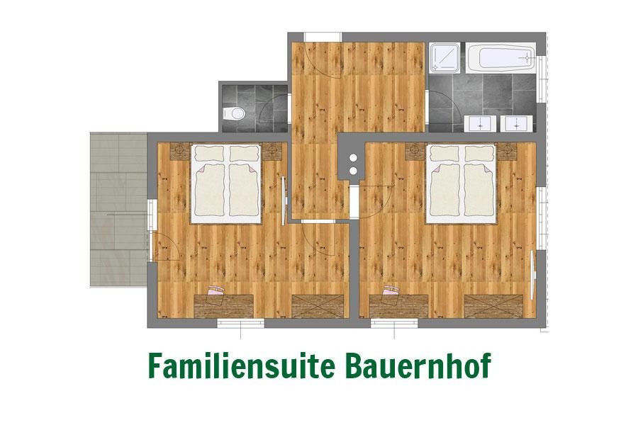 Die Familiensuite befindet sich im alten traditionellen Teil des Berhotel Lämmerhof und ist das preisgünstigste Zimmer für kleine und große Familien.