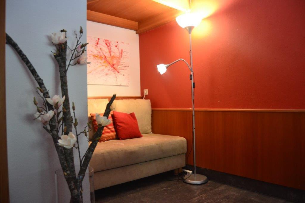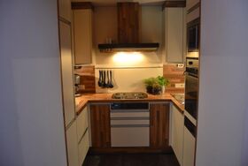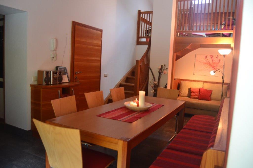 Wohnung/ Zimmer : gemütlicher Wohnraum mit grossem Tisch, Couch, Küche