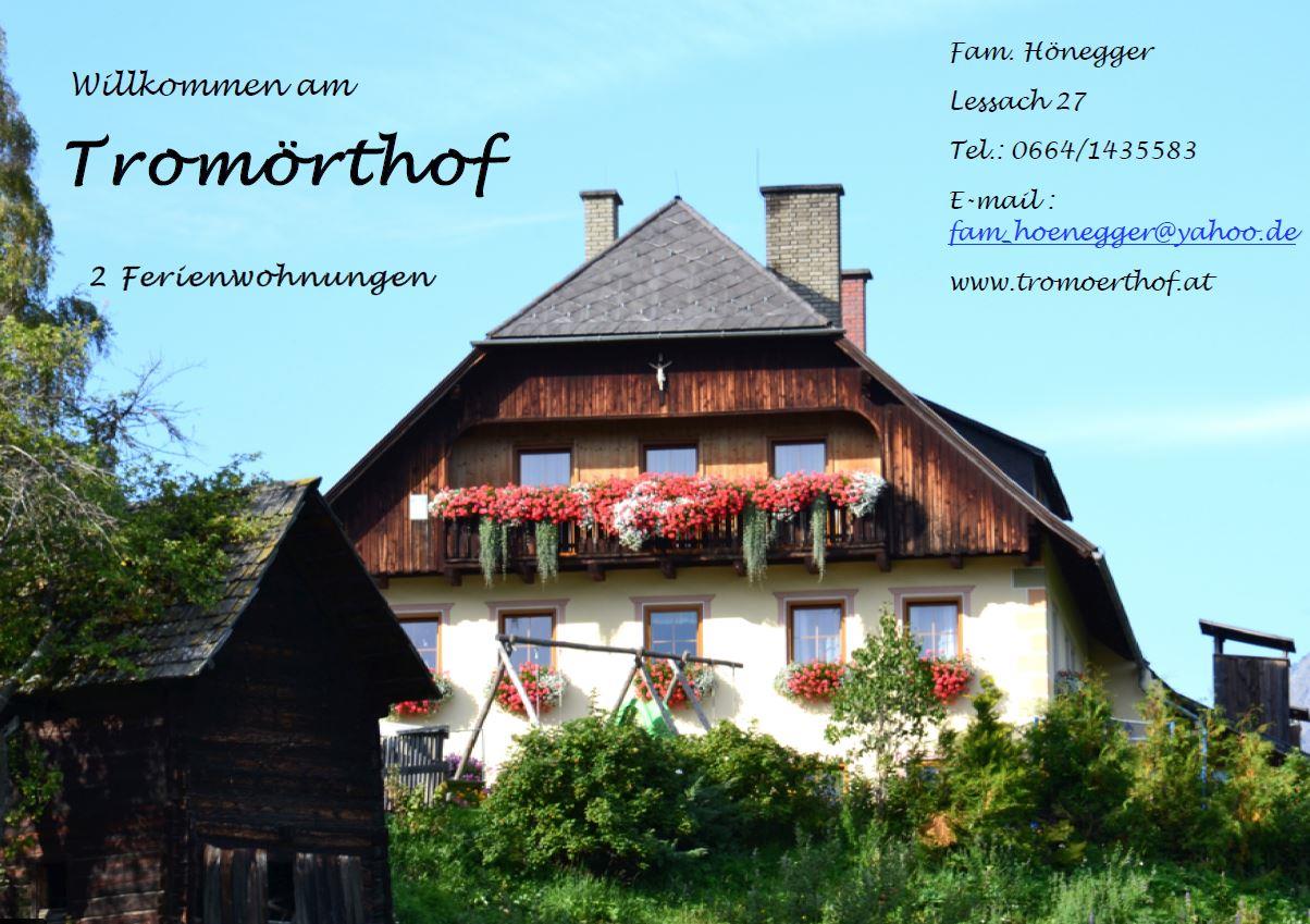 Der Tromörthof liegt ca. 1km außerhalb des Ortes Lessach in ruhiger Lage mit herrlichem Blick auf das Tal und die Berge. Zwei komfortable Ferienwohnungen, großer Garten mit Spiel- und Liegewiese sowie ein Streichelzoo laden zum Urlauben ein. Die selbst hergestellten biologischen Produkte und das Grillen auf der eigenen Alm sind bei jedem Gast beliebt.