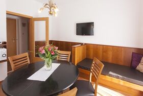 Appartement Nr.7 - A1 Familienappartement mit 2 Schlafzimmern und 1 Wohn-Schlafzimmer, Küche komplett eingerichtet mit Kaffeemaschine, Wasserkocher, Toaster und Geschirrspüler – Mikrowelle auf Wunsch, 1x Bad oder Dusche/WC, Telefon, Radio, Flatscreen-TV, Zimmersafe, Haartrockner im Bad, Balkon oder Terrasse, für 4-7 Personen, ca 75m2, Zustellbett für 7. Person möglich.