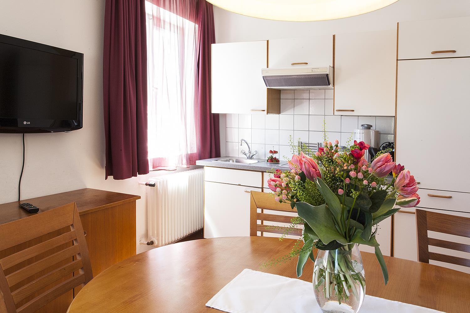 Appartement Nr.3 - A2 Familienappartement mit 2 Schlafzimmern und 1 Wohn-Schlafzimmer, Küche komplett eingerichtet mit Kaffeemaschine, Wasserkocher, Toaster und Geschirrspüler – Mikrowelle auf Wunsch, 2x Bad oder Dusche/WC, Telefon, Radio, Flatscreen-TV, Zimmersafe, Haartrockner im Bad, für 4 - 7 Personen, ca. 75 m2, Zustellbett für 7. Person möglich.