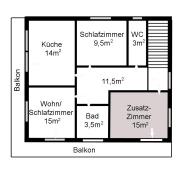 Die Ferienwohnung besteht aus einer großen Küche, Wohnzimmer mit Ausziehcouch, Digital-Sat-TV und Balkonen nach Süd und West, einem Schlafzimmer, einem nagelneuen Badezimmer und einem WC . Bei mehr als 4 Personen wird die Ferienwohnung um ein zusätzliches Schlafzimmer erweitert. Die Ferienwohnung kann von 2-6 Personen gemietet werden.
