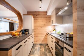 Ausstattung der Wohnung Typ Keeskogel: eine Wohnküche, drei Schlafzimmer, ein Badezimmer mit Dusche/WC und ein Badzimmer mit Badewanne, separates WC, TV, W-Lan, Balkon; Wohnungsgröße: 98 m2