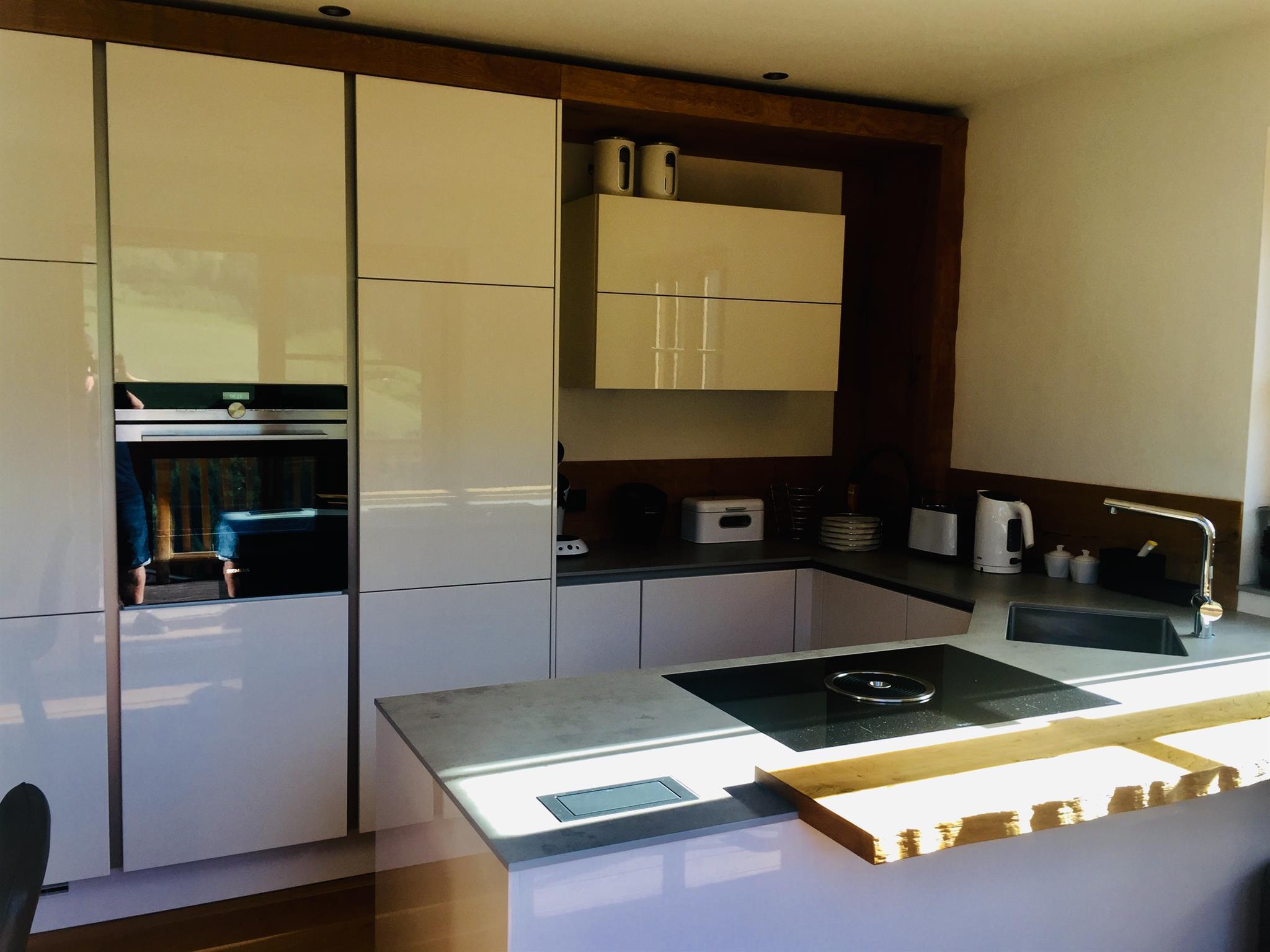 • moderne Komfortküche mit Induktion, Spülmaschine, Kühl/Gefrierschrank, GroheBlueSprudelwasser