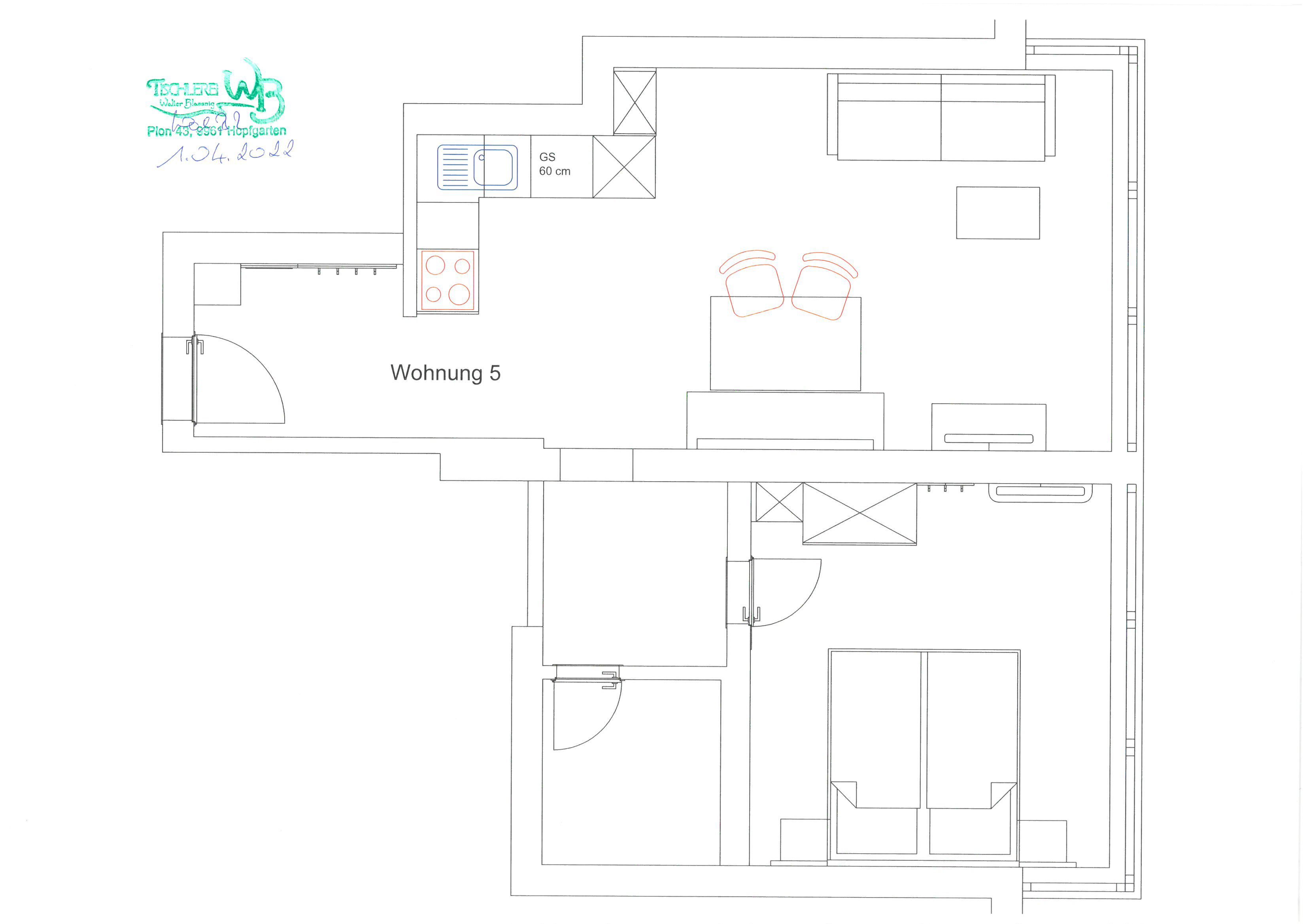 48 m², komplett neu saniert, Vorraum mit Garderobe, Küche, Wohn-Schlafraum mit Ausziehcouch für 2 Personen, 1 Schlafzimmer mit Doppel-Bett, Kühlschrank, HD Flat-TV, gratis W-Lan, schöner Ausblick, Mitbenutzung Balkon zur Gartenseite (Schwimmteich).