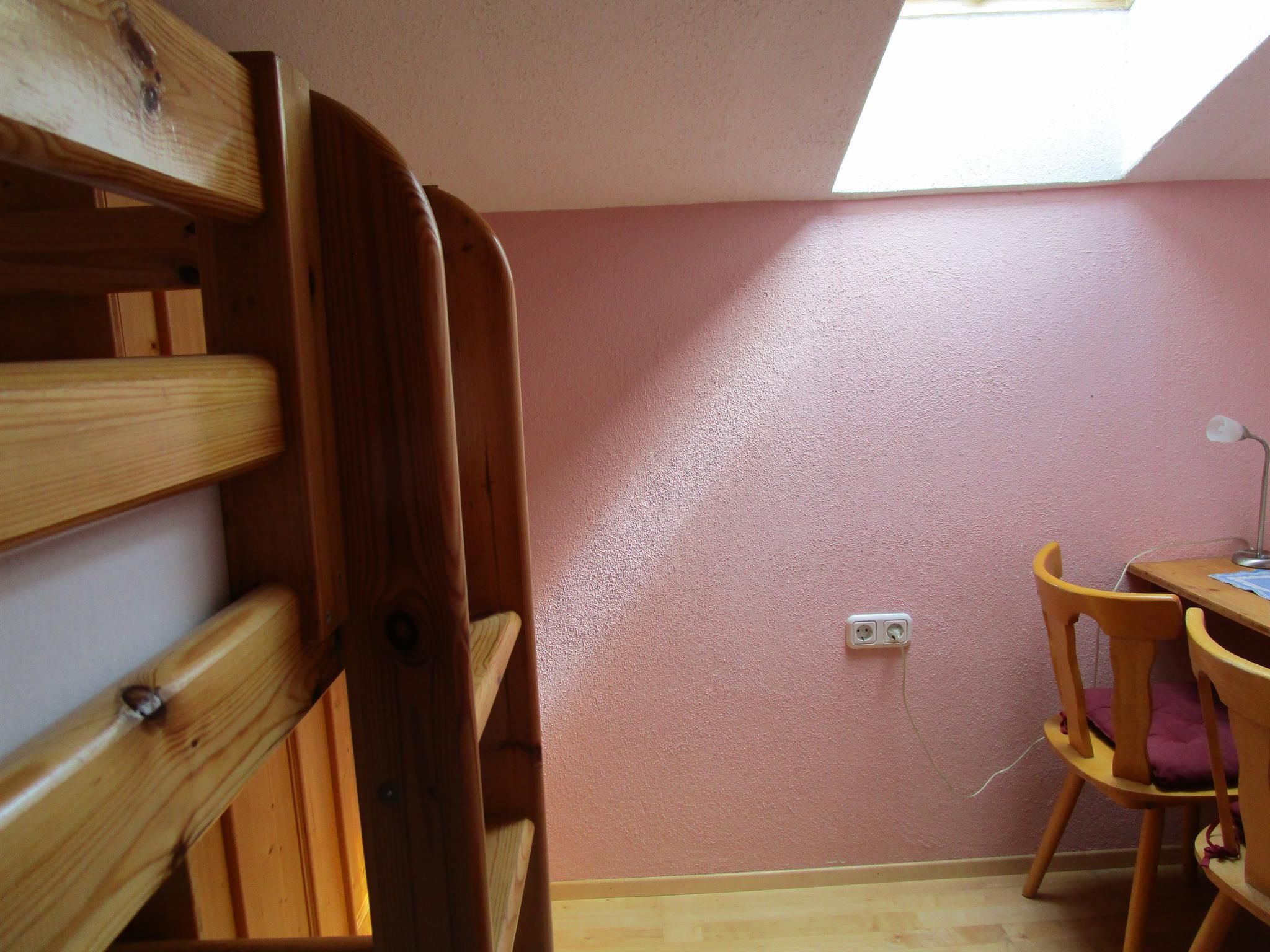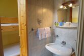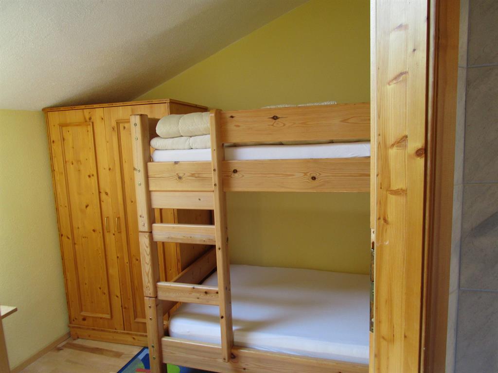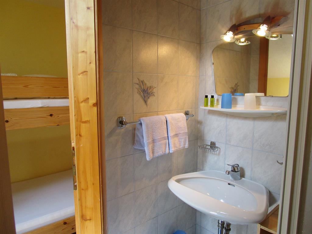 Großes Familienzimmer mit getrennten Räumen, das Elternschlafzimmer ist groß und das Kinderzimmer ist mit Stockbetten und durch Dusche/WC getrennt. Das Fernsehgerät ist im Elternschlafzimmer, ebenso ist der Balkon von dort zu begehen.