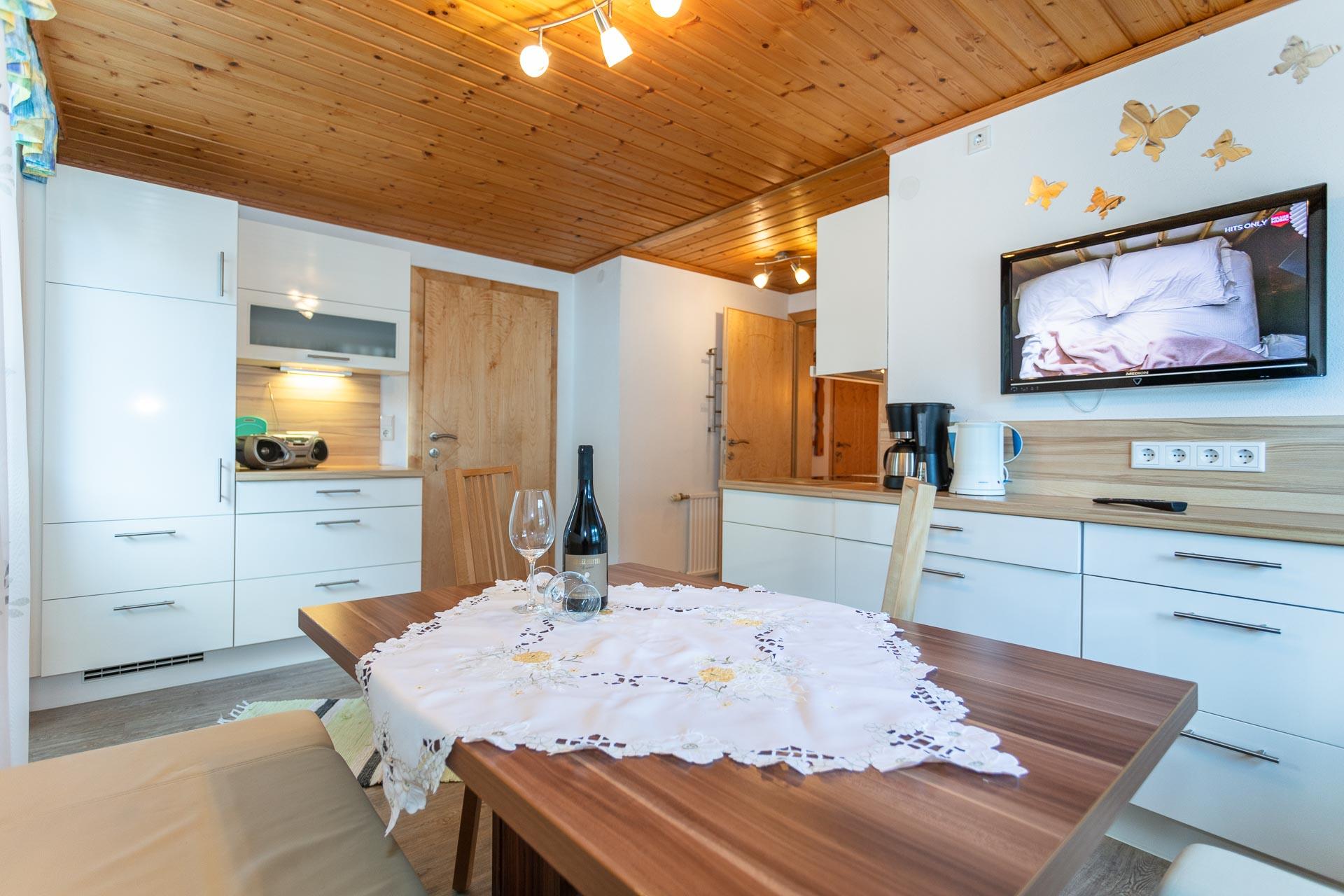 Schöne Ferienwohnung im 2 Stock. Gemütlich im ländlichen Still eingerichtet für 4 Personen. Sie besteht aus Vorraum Dusche/WC,Föhn, Wohnküche, Küchenblock mit Geschirr, 2 Doppelbettzimmern die getrennt vom Vorraum begehbar sind, gut geeignet für 4 P